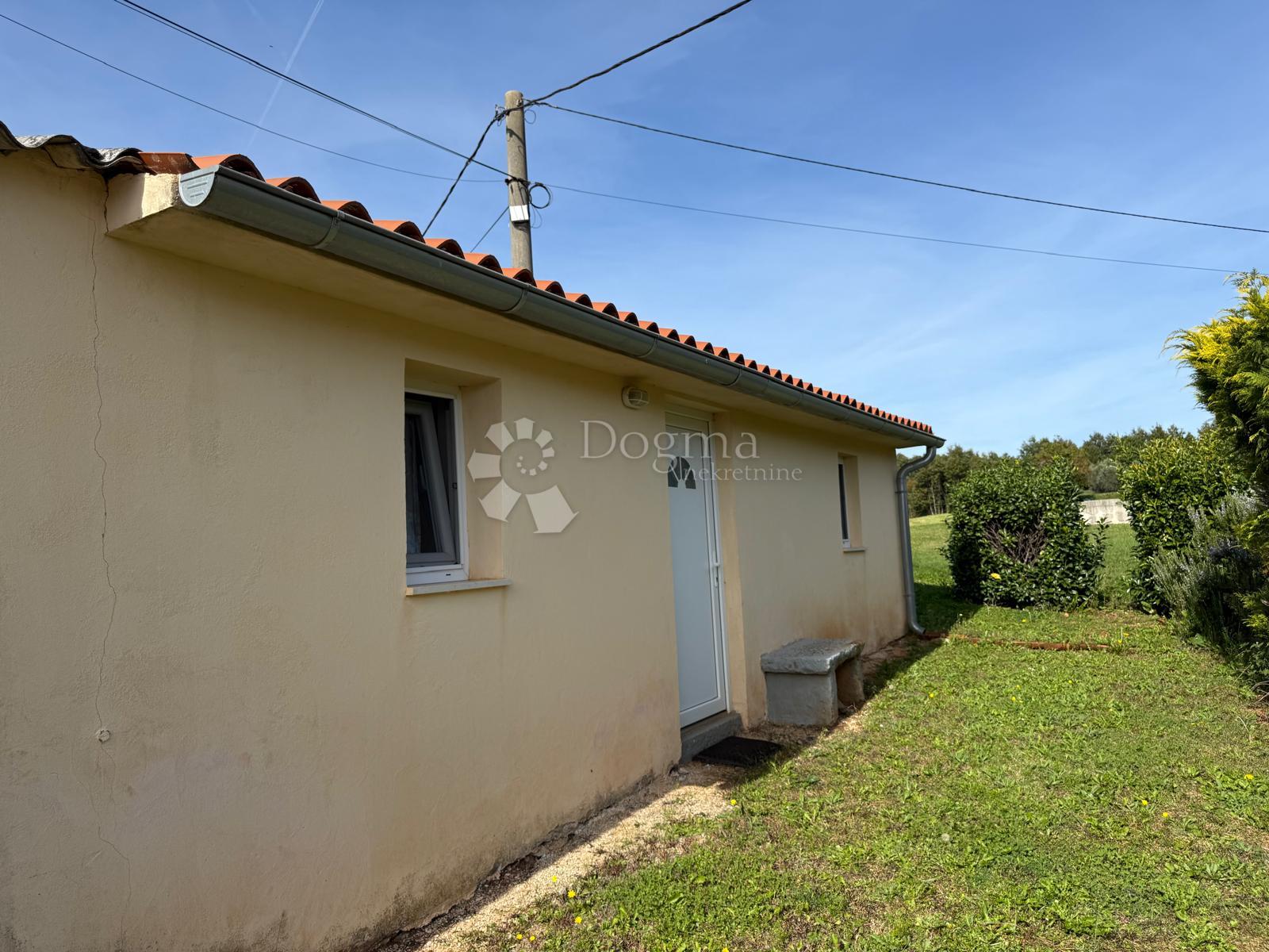 Smještena u tihim, zelenim Filinima – onom istarskom zaseoku gdje se još uvijek čuje šapat stabala i mirisi zemlje ne žure nigdje – nalazi se ova zanimljiva kuća upisana kao gospodarska zgrada/konoba ukupne površine 66 m². Na prvi pogled jednostavna, ali s dušom i slojevima priče: jedan dio građen je od kamena, drugi obnovljen oko 2000. godine, a cijela okućnica od 761 m² obavija je poput mekog zelenog plašta.