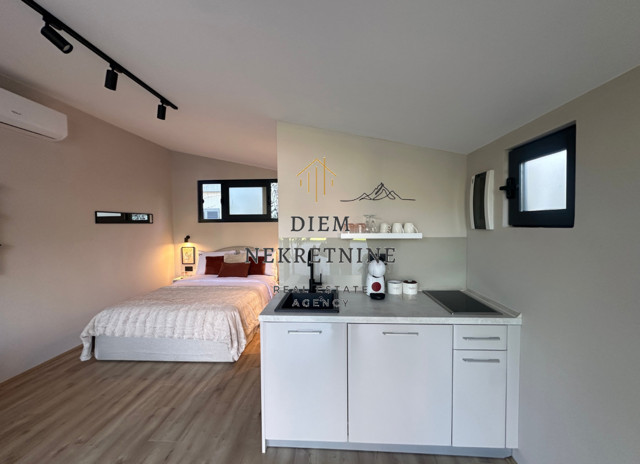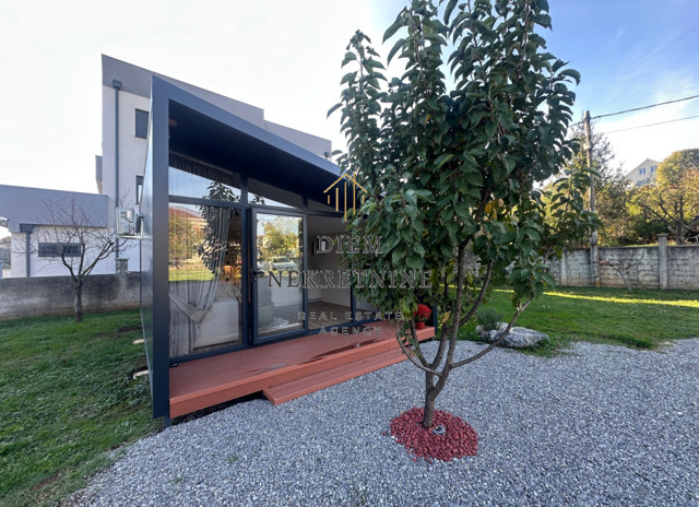 Moderno namjestena kućica površine 25m2 se izdaje do Juna 2026. Nalazi se na mirnoj lokaciji naselja Vranici (plac površine 500m2) sa slobodnim parkingom.