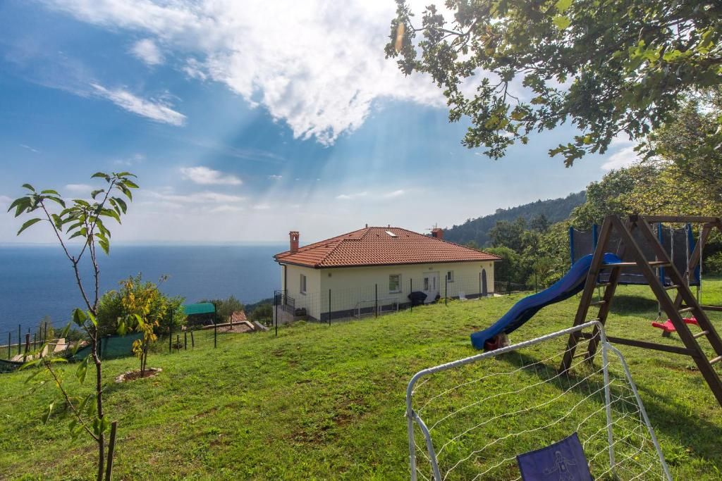 Opis (Engleski): House for sale in Liganj, Lovran, with a panoramic sea view and a large private garden, located only 4 km from the Adriatic coast. This property is one of the most attractive real estate opportunities on the Opatija Riviera, ideal for buyers searching for a sea-view house in Croatia, a quiet location near Lovran, or a high-yield tourist rental investment.Positioned on a generous 1826 m² plot, the house offers 270 m² across three levels and is surrounded by greenery, peace and a quality residential neighborhood. Its elevated position provides an uninterrupted view of the sea, the islands of Kvarner Bay, Rijeka and the Učka mountain, making it especially appealing to international buyers looking for coastal property in Croatia with privacy and nature.The basement includes a double garage and technical space, ensuring organized storage and functional daily living. The ground floor consists of two 54 m² apartments and a 21 m² studio, a configuration strongly suited for tourist rentals, multi-unit accommodation, long-term tenants or multigenerational living....