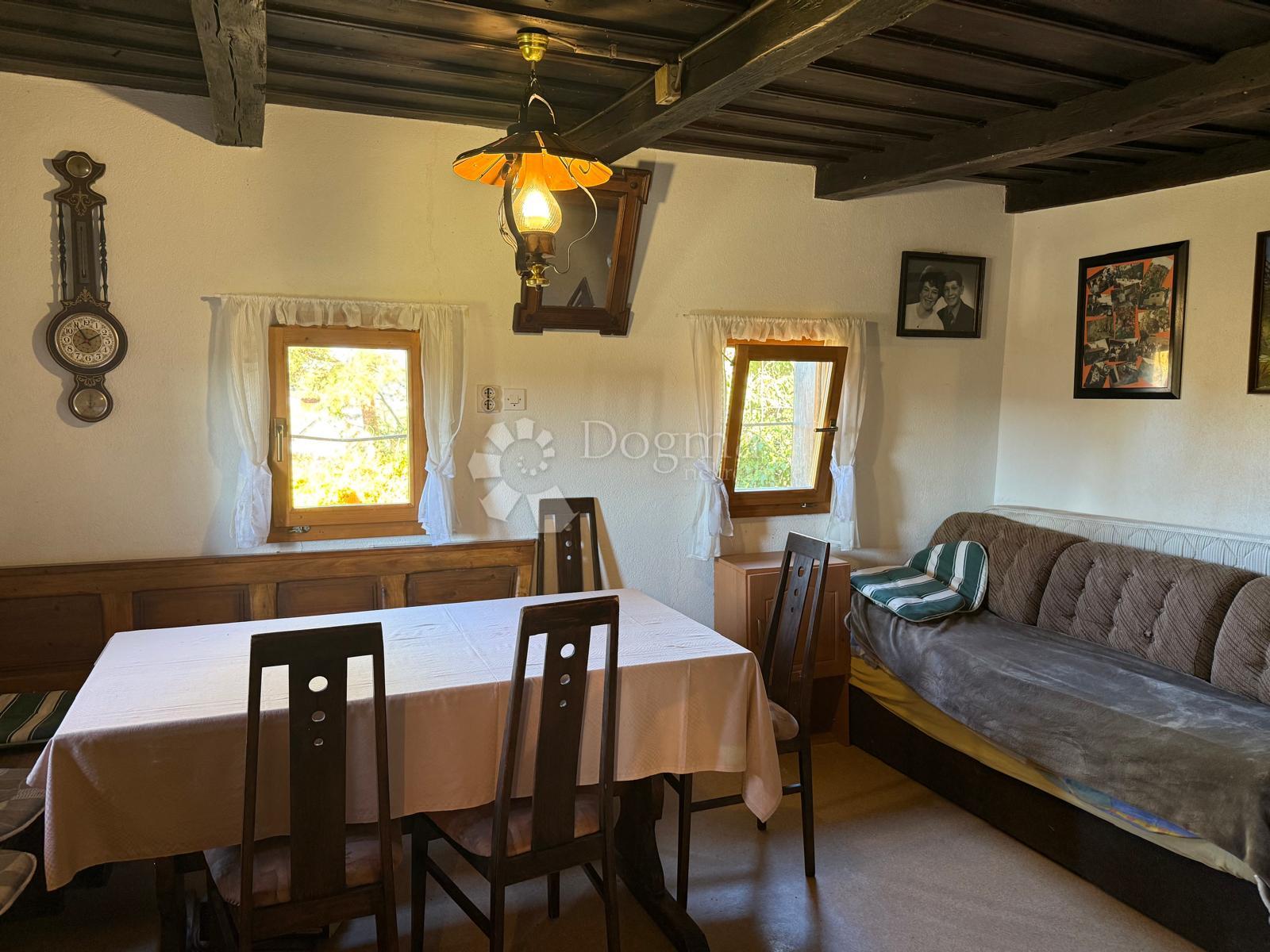 Ulaskom u prizemlje dočekuje vas hodnik koji vodi u veliki rustikalno uređen dnevni boravak, okupan prirodnim svjetlom, s pogledom na zelene brežuljke. Iz hodnika se ulazi i u šarmantnu kuhinju te praktičnu kupaonicu s tuš kadom i toaletom.