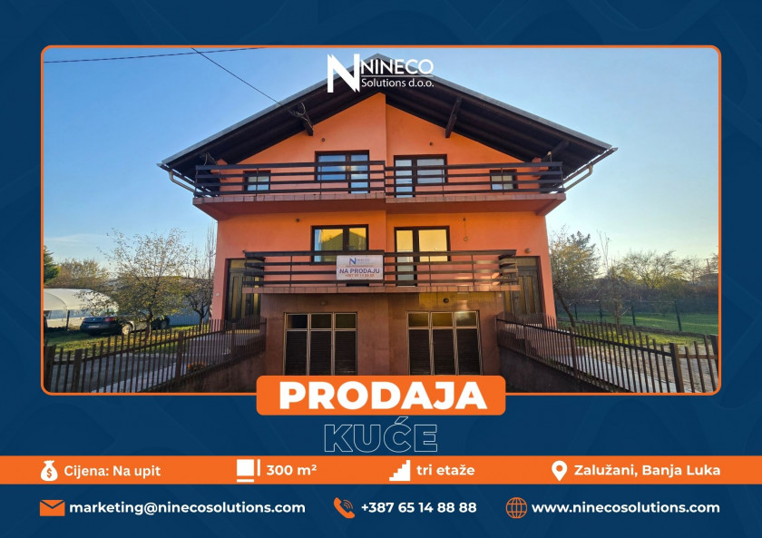 Prodaje se prostrana porodična kuća površine cca 300 m², smještena u mirnom dijelu Zalužana, u jednosmjernoj ulici sa minimalnim saobraćajem. Objekat je idealan za porodično stanovanje, ali i za kombinaciju stambenog i poslovnog prostora.