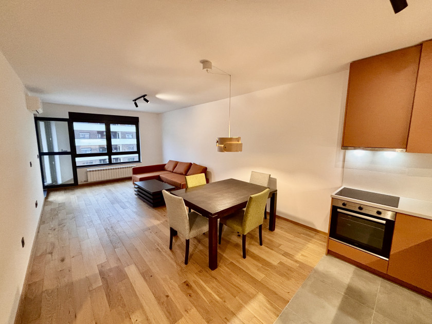 Stan se odlikuje izuzetnom funkcionalnošću i visokim kvalitetom završnih radova. Dnevni boravak sa trpezarijskim delom izlazi na prostranu terasu sa otvorenim, prijatnim pogledom, dok spavaći deo pruža maksimalnu udobnost i mir.