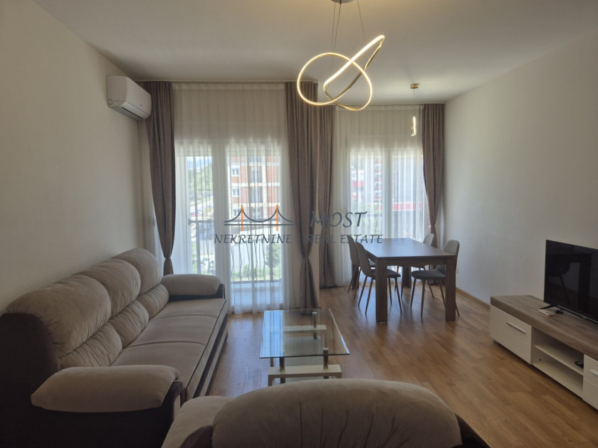 Opis: U ponudi je udoban i funkcionalan dvosoban stan, smješten na drugom spratu stambene zgrade na odličnoj lokaciji – Zabjelo, u neposrednoj blizini Multicoma. Stan ima dobro organizovan raspored prostorija: ulazni hodnik vodi ka prostranoj dnevnoj sobi povezanoj s trpezarijom i kuhinjom, dvije odvojene spavaće sobe, kupatilo i dodatni gostinski toalet. Stan posjeduje dvije terase koje dodatno doprinose udobnosti i osjećaju prostora. Idealan je za porodično stanovanje ili za parove koji cijene komfor i praktičnost. Stan je dostupan za useljenje odmah.