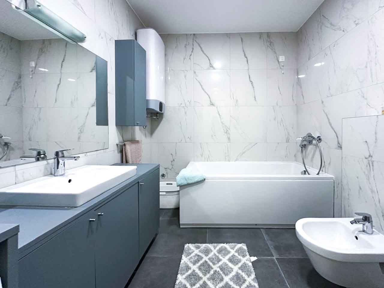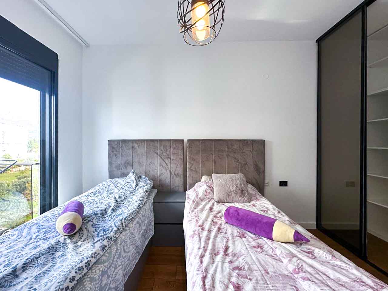 Struktura stana: ulazni hodnik, dnevni boravak sa trpezarijom i kuhinjom, dvije spavace sobe, dva kupatila.