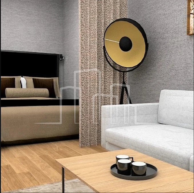 Apartman površine 28.45m2 se nalazi na 6.spratu zgrade sa liftom i sastoji se od ulaznog hodnika, dnevnog boravka s trpezarijom i kuhinjom i kupatila.