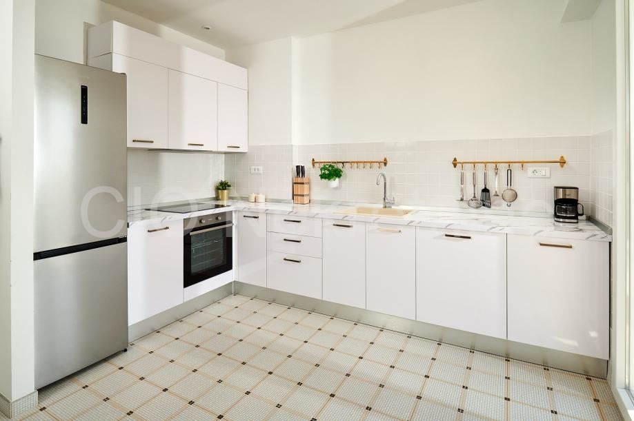 Interijer je svijetao, praktično osmišljen i pregledno organiziran. Većina namještaja izrađena je po mjeri i skladno uklopljena u prostor koji karakteriziraju jednostavne linije i neutralne boje.