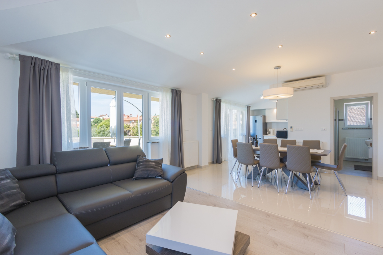 Opis (Engleski): A modern penthouse for sale in Medulin, just 400 meters from the sea, offering 95 m² of living space plus an additional attic area and an 11.29 m² balcony. This beautifully finished property sits in the heart of Medulin, one of Istria’s most desirable coastal destinations for both living and tourism. The penthouse combines contemporary design with comfort and functionality, making it ideal as a full-time home or as a high-yield rental investment.The apartment has a total interior size of 94.72 m² and features a spacious, light-filled living room connected to a modern kitchen and an elegant dining area. There are two comfortable bedrooms suitable for family living or hosting guests, along with two stylishly designed bathrooms. The 11.29 m² balcony provides the perfect spot for a morning coffee or evening relaxation with a view over Medulin’s rooftops. The attic is arranged as an extra storage space, fully finished and equipped with lighting. The property also includes a private parking space in front of the building, and is equipped with air conditioning and central gas heating to ensure year-round comfort....