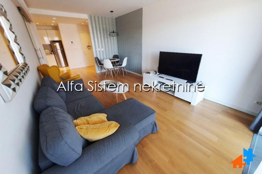 Opis: Ovaj luksuzan stan se nalazi u okvirnu prestižnog kompleksa West 65, verovatno najkvalitetnije gradnje na celom Novom Beogradu.