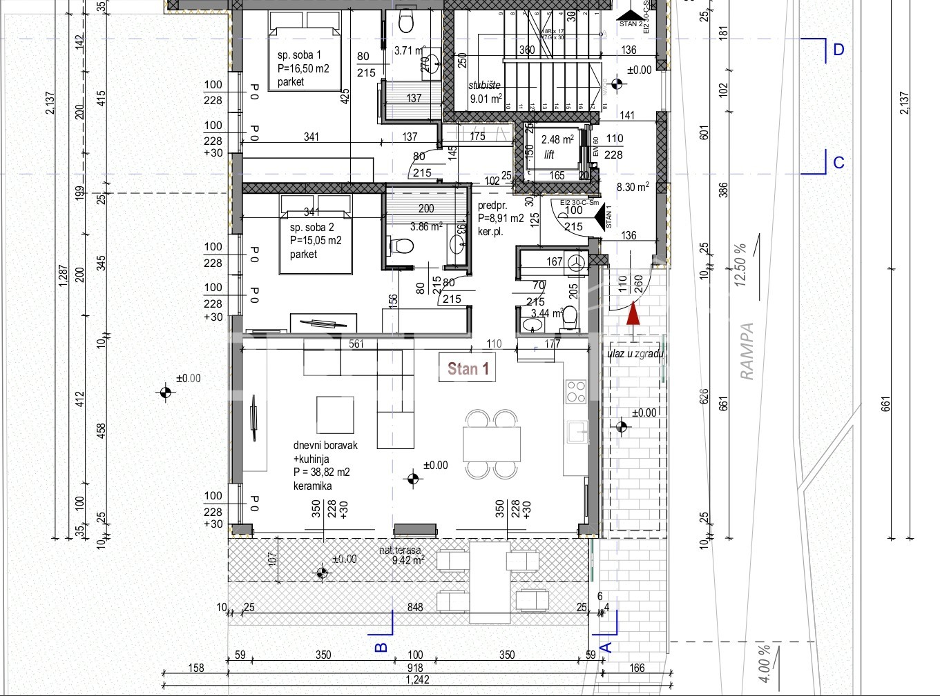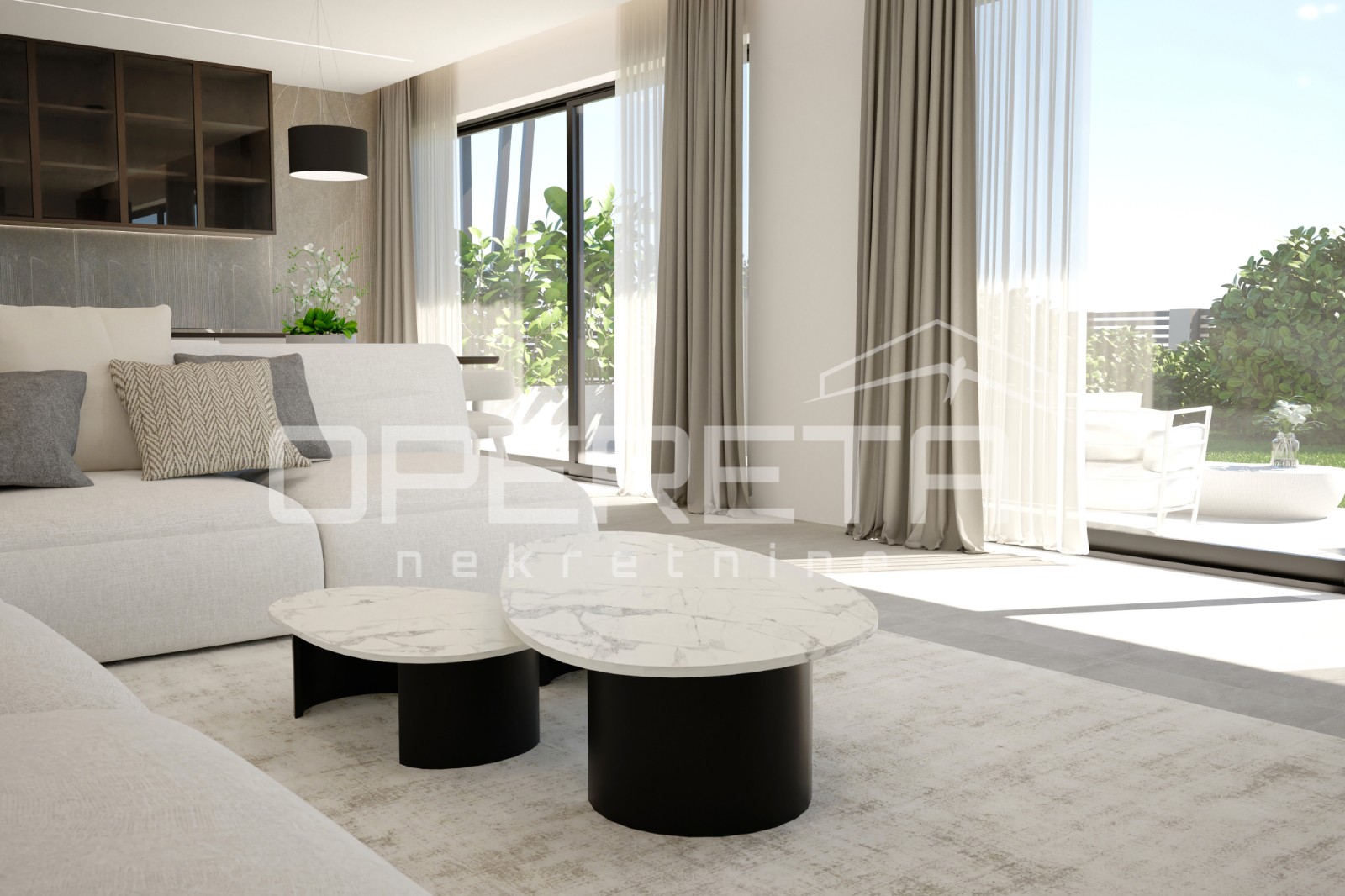 Opis: Prodaja, Rovinj, Luksuzni stan 1. klase s vrtomNa prodaju je ekskluzivan stan vrhunske kvalitete u Rovinju, smješten u mirnoj ulici svega 500 metara od centra grada. Ova nekretnina pruža savršen spoj luksuza, udobnosti i moderne arhitekture, idealna za one koji traže vrhunski životni prostor u najpoželjnijem gradu u Istri.Stan se nalazi u prizemlju moderne zgrade s liftom i odlikuje se vrhunskom gradnjom te pažljivo osmišljenim rasporedom. Zahvaljujući velikim staklenim površinama, interijer je svijetao i prozračan dok ugodan vrt površine 80 m² nudi savršeno mjesto za opuštanje i uživanje na otvorenom.Raspored čini:Predprostor, prostrani dnevni boravak s kuhinjom i blagovaonicom sa Izlazom na natkrivenu terasu i vrt, dvije prostrane spavaće sobe, svaka s vlastitom kupaonicom i izlazom na vrt.Stanu pripada spremište od 11 m² u prizemlju zgrade te dva garažna mjesta u podrumu, s utičnicama za punjenje električnih vozila.Također, stan ima pristup i mogučnost korištenja dodatnog vrta od 110 m2....