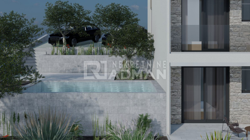 Opis: Mirna lokacija nedaleko od mora, mjesto je nove zgrade u procesu izgradnje sa samo četiri stambene jedinice u lijepoj modernoj vili.