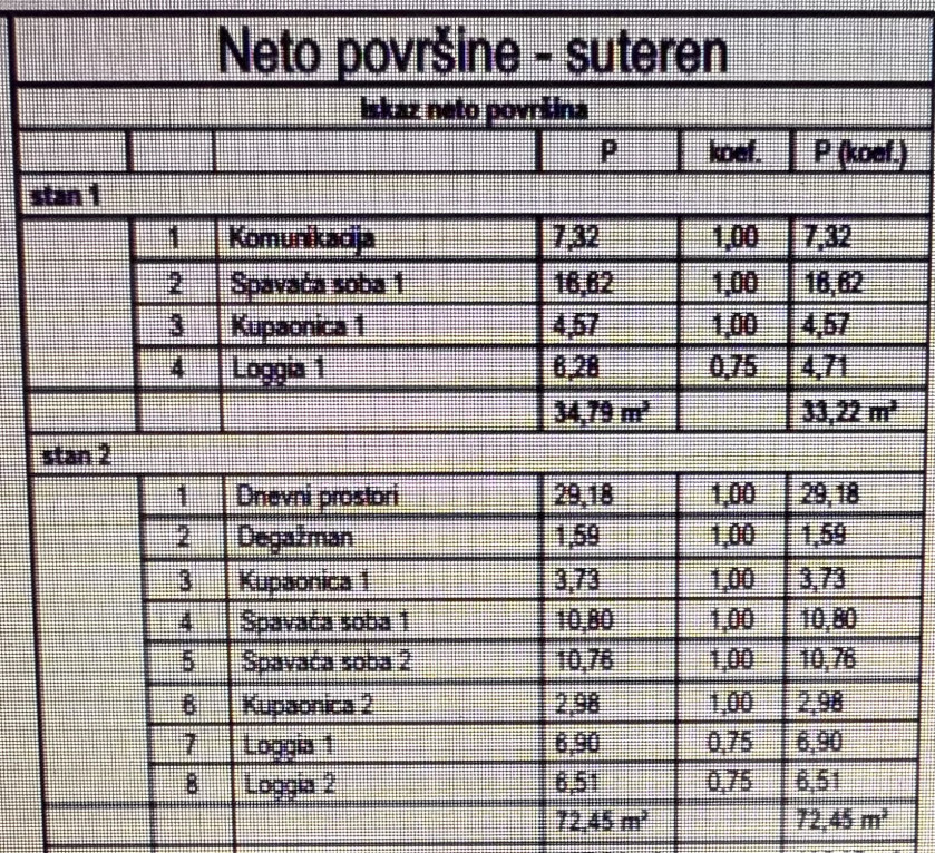 Stan se nalazi na etažama :prizemlja prvog i drugog kata, a stambena površina iznosi 99,00 m²,.