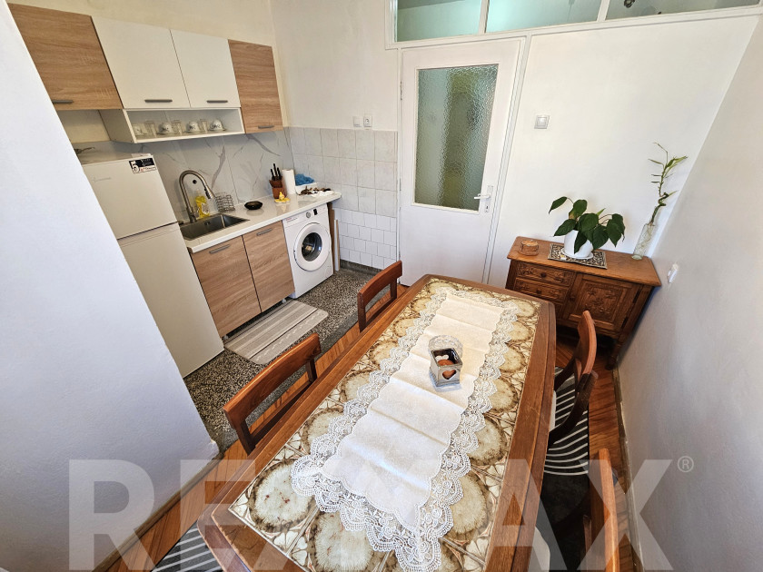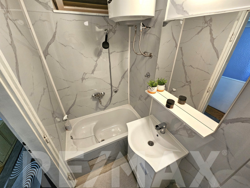 Stan je opremljen uređajima za komforan boravak, uključujući mašinu za pranje veša, frižider, šporet (koji nije prikazan na fotografijama), a u stan će biti ubačen i veći TV uređaj, po dogovoru.