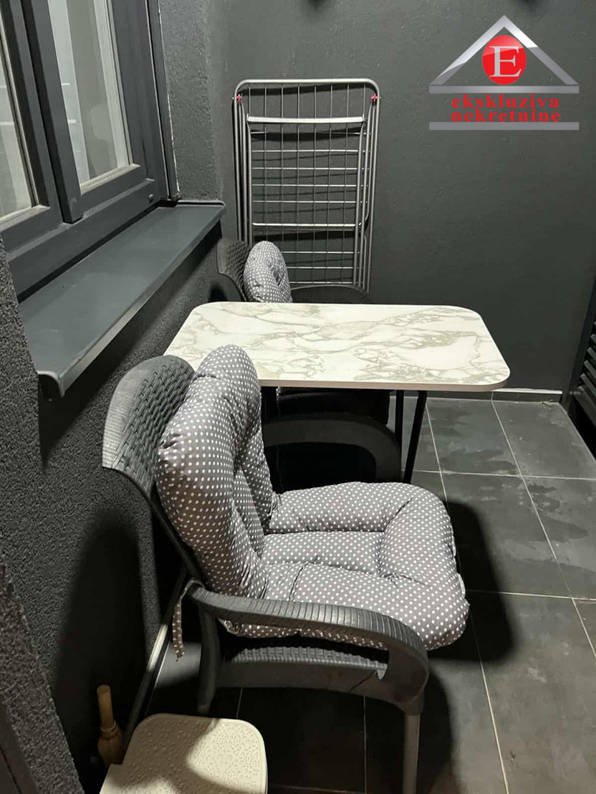 Opis: Moderno namješten jednosoban stan površine 39,5 m2, na V spratu u zgradi sa liftom!