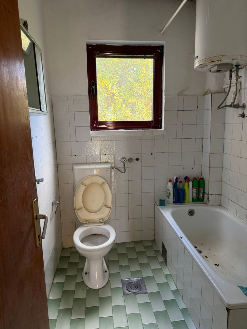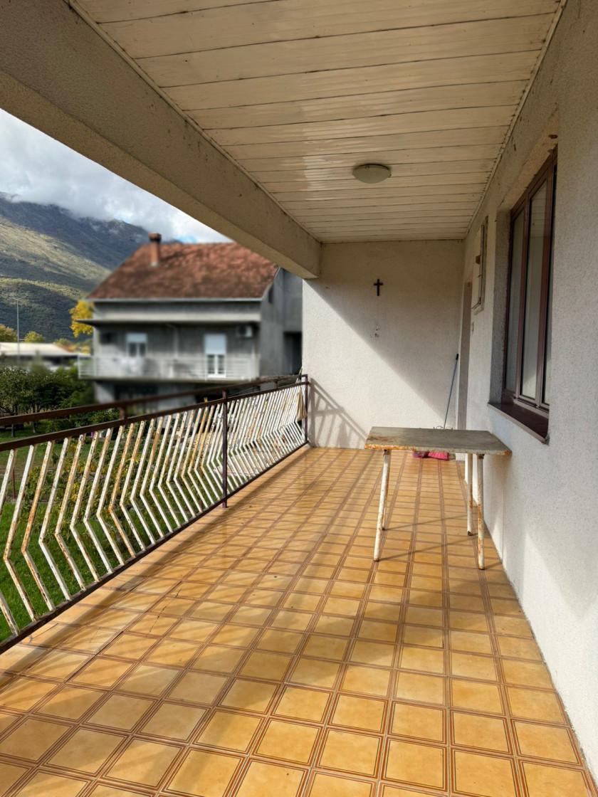 Gornji sprat: namješten (prodaje se sa namještajem) i ima šporet na drva