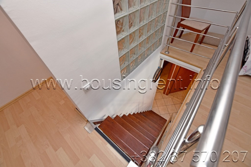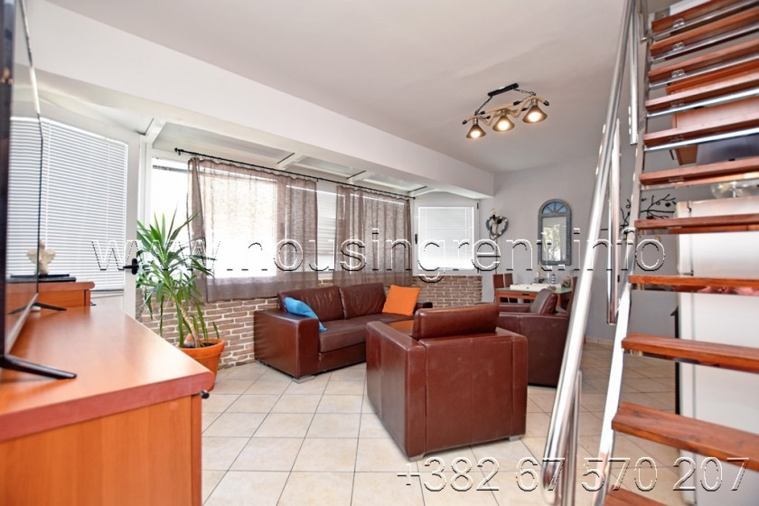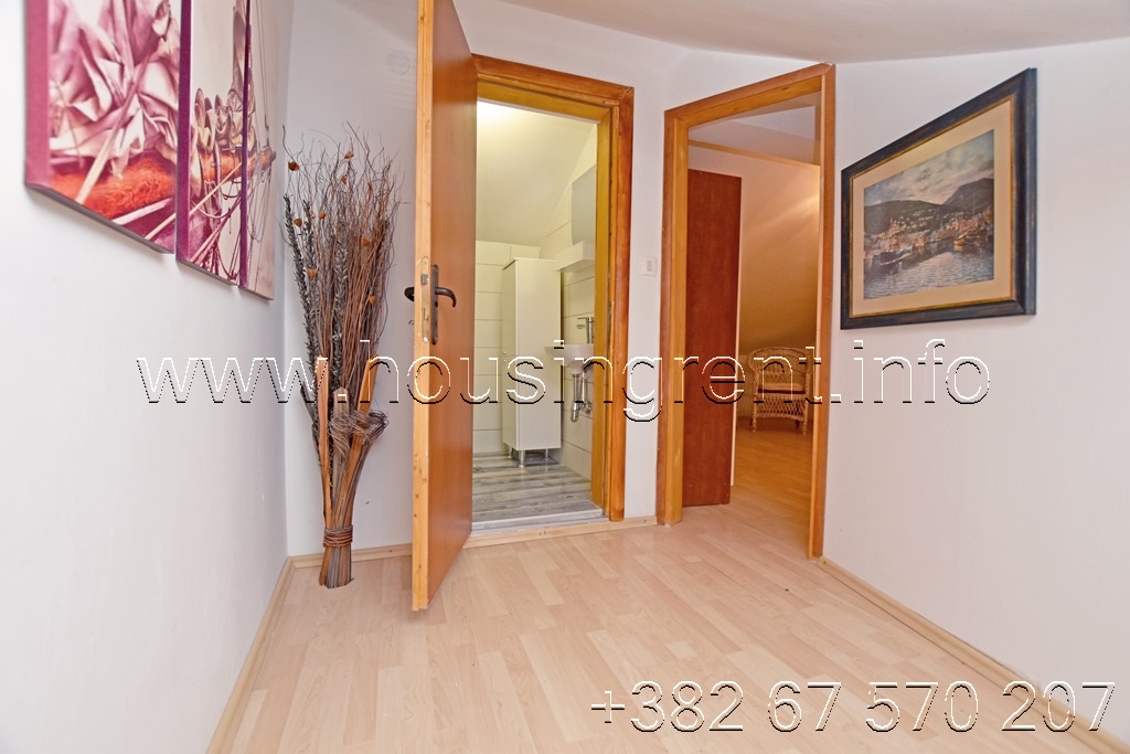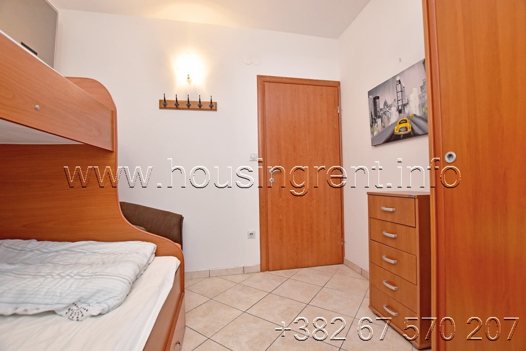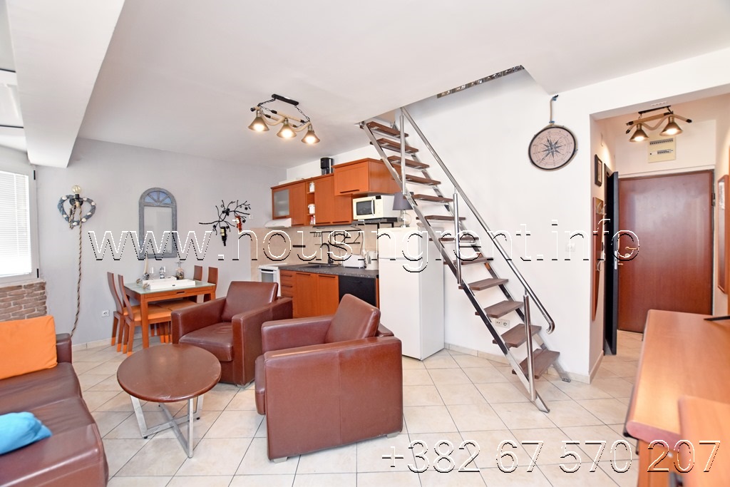 Opis: Trosoban stan u kompleksu sa bazenom Đenovići. Stan površine 90 m2, dupleks, blizu mora. Raspored prostorija: dnevna soba sa kuhinjom, dvije spavaće sobe, terasa i kupatilo; sprat: predsoblje, hodnik, spavaća soba i kupatilo. Parking mjesto obezbjeđeno ispred zgrade. Cijena 900 eura mjesečno + računi (bazen, voda i struja), internet i Tv uključeni u cijenu.