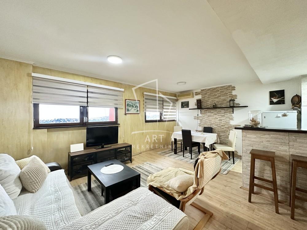 Stan se sastoji u donjem delu od ulaznog hodnika,dnevne sobe sa trpezarijom i kuhinjom, kupatila i jedne male sobice.Na spratu se nalazi prostrana spavaća soba sa ugradnim ormarima i velika terase.