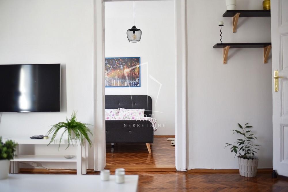 Opis: Izdajemo kompletno namešten, izuzetno svetao i uredan dvosoban stan od 50m², smešten u samom i mirnom delu Dositejeve ulice na Dorćolu.