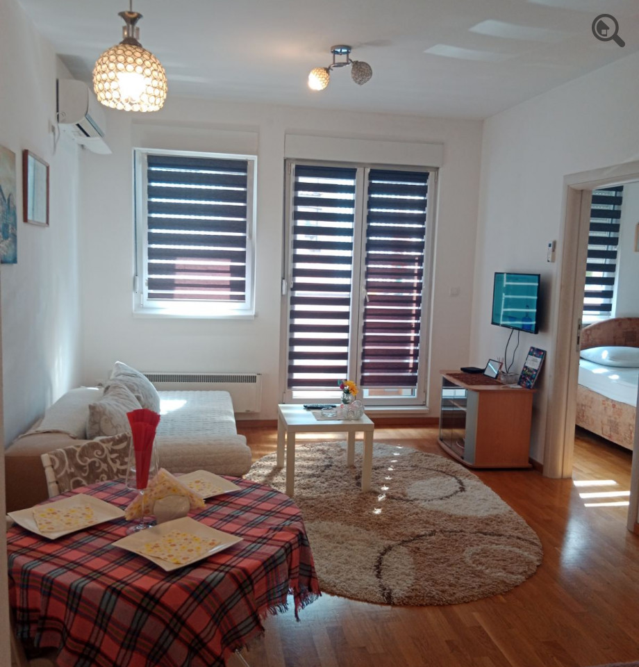 Opis: Apartman Dora se nalazi u mirnom delu Zvezdarskog naselja Mirijevo, na adresi: Dragoslava Djordjevića Goše 14A. Smešten je na prvom spratu zgrade sa liftom, površine je od 40m2 i namenjen je za 3 osobe. Sastoji se od jedne odvojene spavaće sobe u kojoj se nalazi francuski ležaj koji je namenjen za 2 osobe, dnevni boravak sa sofom na kojoj može spavati jedna osoba. Kompletno opremljena kuhinja koja je prilagodjena kako za kraći, tako i za duži period boravka. Kupatilo sa tuš kabinom i veš mašinom. Gostima je na raspolaganju od dodatnog sadržaja, besplatan WiFi internet, LCD TV sa kablovskim kanalima, čisti peškiri i čista posteljina. Apartman se nalazi na dva minuta hoda pešaka od okretnice autobusa 46,74, 25P i lokacija je dobro povezana sa svim delovima grada. U ulici se nalazi pekara, prodavnica i brza hrana. Nedaleko od apartmana je trzni centar Karaburma i Big Fashion. Parking mesto postoji u ulici i besplatno je, ali nije rezervisano. Apartman Dora nudi i opciju dnevnog odmora od 15h do 19h. Cena dnevnog zakupa iznosi 25e. Dobrodošli!
