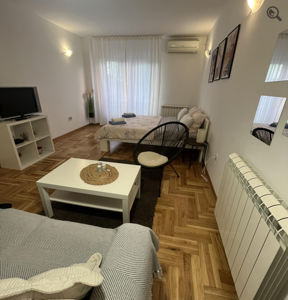 Opis: Apartman Manu - Beograd. Apartman se nalazi na opštini Zvezdara kod Đeram pijace, na adresi Đuke Dinić 12. Studio apartman Manu je smešten na 1. spratu nove stambene zgrade sa liftom. Površine je 35m2 i pogodan je za smeštaj do 2 osobe. Studio se sastoji od jedne velike sobe u kojoj se nalazi udoban bračni krevet za dvoje i sofa. Kuhinja je u sklopu dnevnog boravka opremljena indukcionom pločom, mikrotalasnom, posuđem i escajgom. Kupatilo je opremljeno osnovnim sanitarijama i tuš kabinom. Od dodatnih sadržaja gostima je na raspolaganju besplatan WiFi, kablovski kanali, posteljina i peškiri. Apartman Manu je odlično povezan sa centrom Beograda linijama gradskog prevoza. Ukoliko tražite apartman na atraktivnoj lokaciji nedaleko od Hrama Svetog Save, Tašmajdanskog parka, Vukovog Spomenika, Skadarlije, ovo je pravi smeštaj za Vas! Dobrodošli!