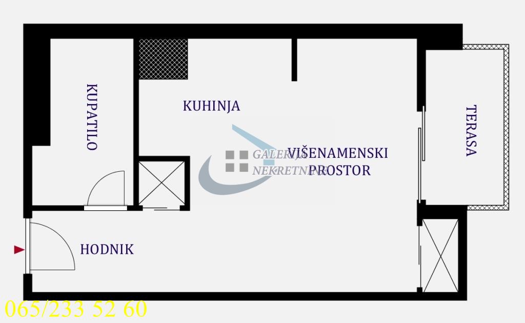 Od prostorija: ulazni hodnik, višenamenska soba sa kuhinjom, kupatilo, lođa.