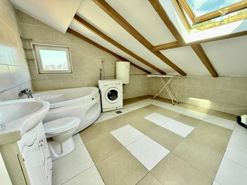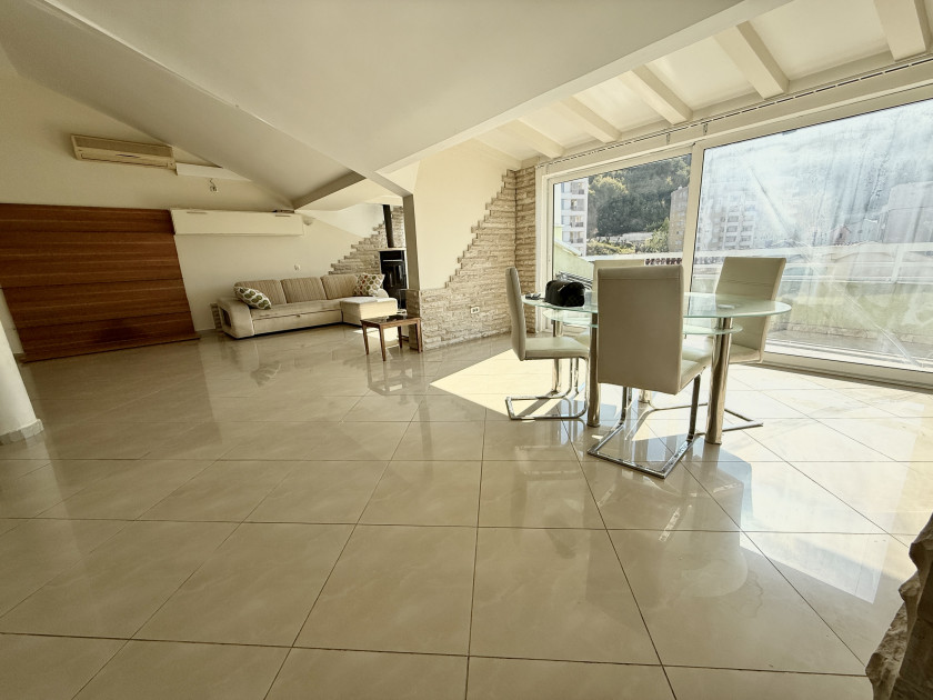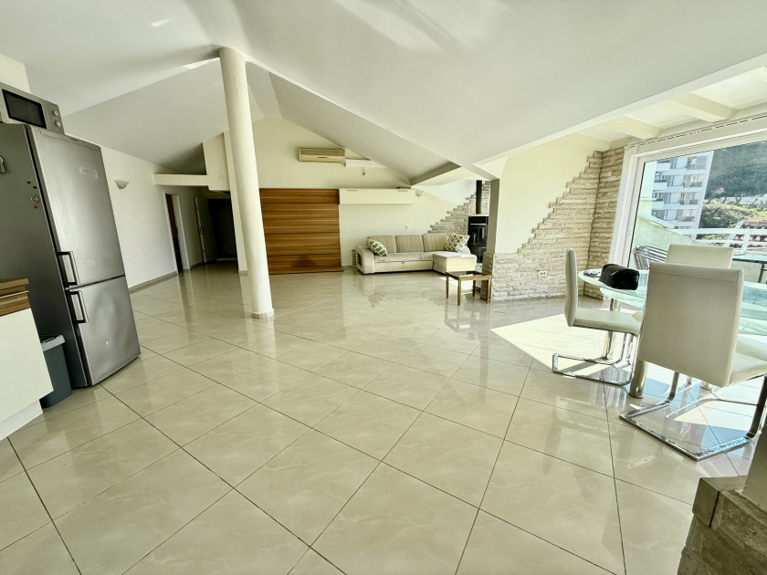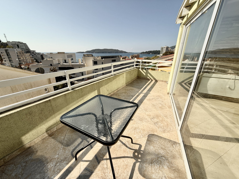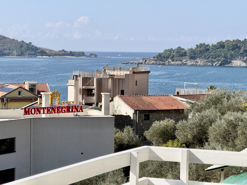 Opis: Rafailovići #7456. Dvosoban stan sa pogledom na more i planine u Rafailovićima, 200 metara od mora, na prodaju. Ukupna površina: 107 kvadratnih metara. Velika terasa sa pogledom na more i planine, sunčana južna strana. 6. sprat, lift. 200 metara od mora.