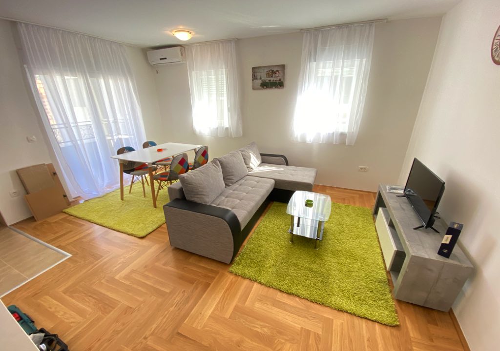 Opis: Budva, #96999: Prodaje se dvosoban stan u novoj zgradi. Drugi sprat, lift, parket, dva kupatila, terasa sa pogledom na planine, kompletno namešten, parket. U blizini se nalazi veliki tržni centar Mega Mol, supermarket, kafići i restorani. Centar je udaljen 10 minuta hoda, a autobuska stanica 5 minuta hoda.
