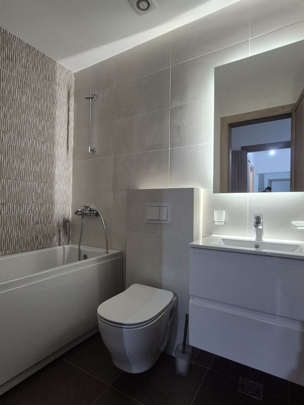 Opis: Izdaje se trosoban stan u Master kvartu na prvom spratu, površine 96 m2. Prostor se sastoji iz hodnika, dnevne sobe sa kuhijom, tri spavaće sobe od kojih je jedna master soba, dva kupatila. U stanu je multi split sistem klimatizacije u svakoj prostoriji. U stanu ce biti opremljena kuhinja koja je u fazi izrade. Za zakupce je obezbijeđeno parking mjesto u garaži.