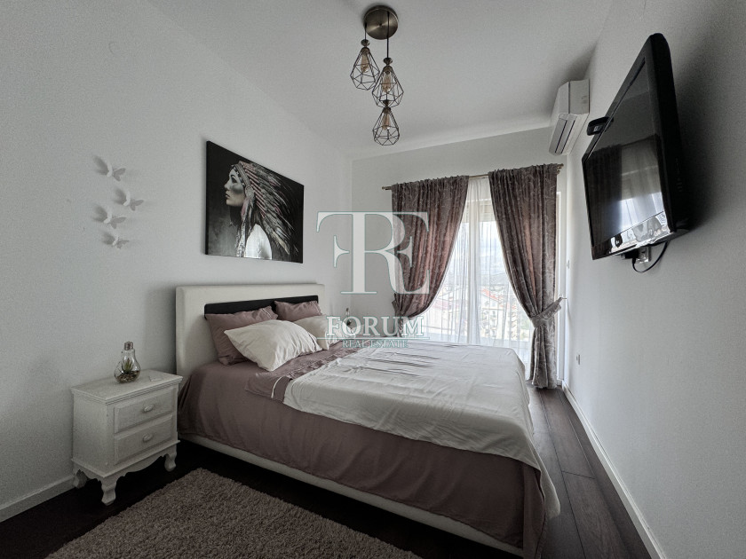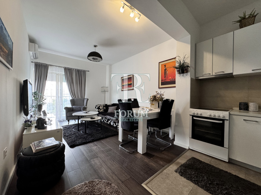 Opis: Za izdavanje je lijepo namješten i potpuno opremljen jednosoban stan na odličnoj lokaciji, u neposrednoj blizini Vezirovog mosta. Stan ima 50 m² i nalazi se na šestom spratu zgrade koja posjeduje lift. Udobno je i kvalitetno opremljen, sa dva klima uređaja i podnim grijanjem.