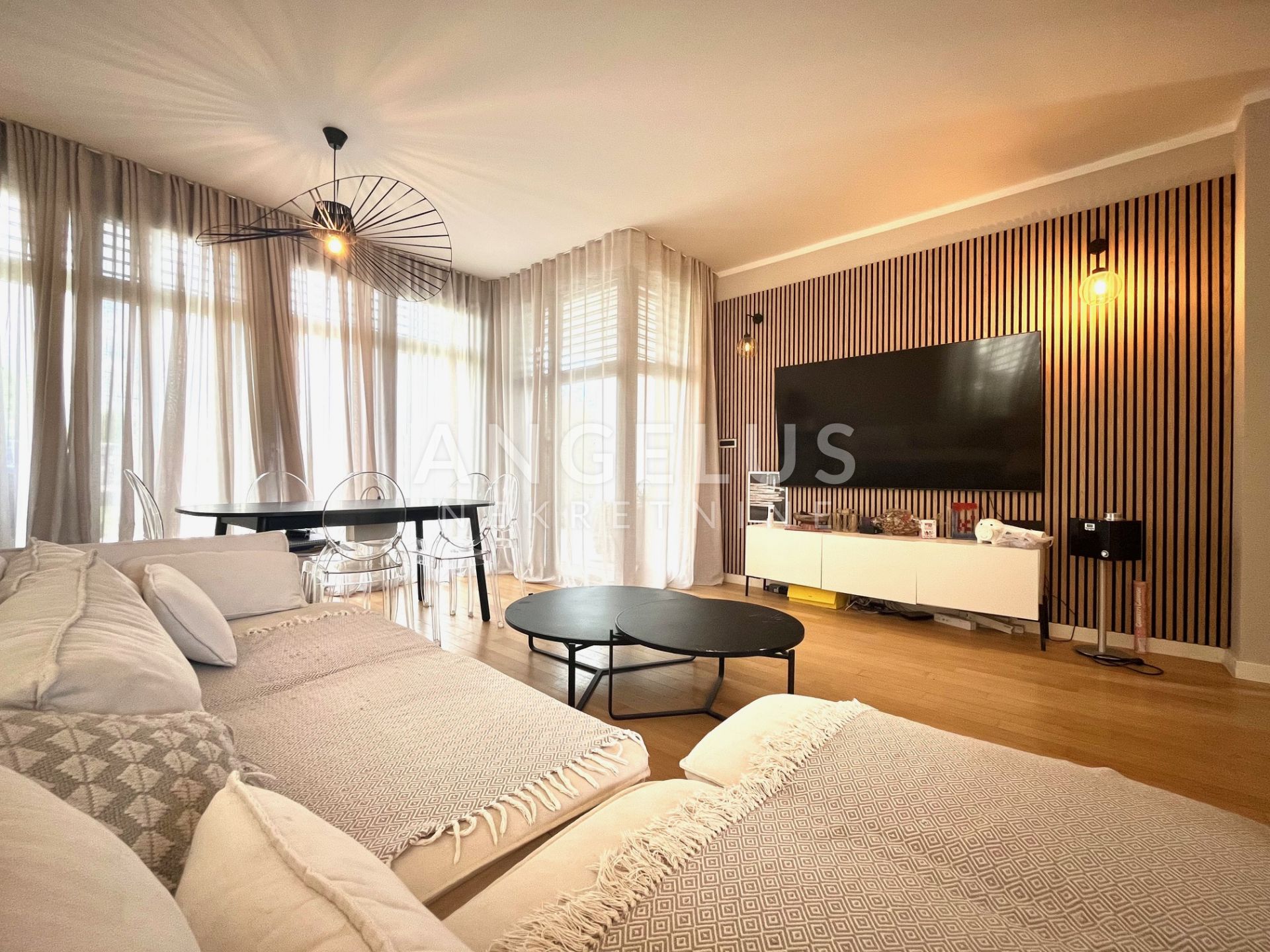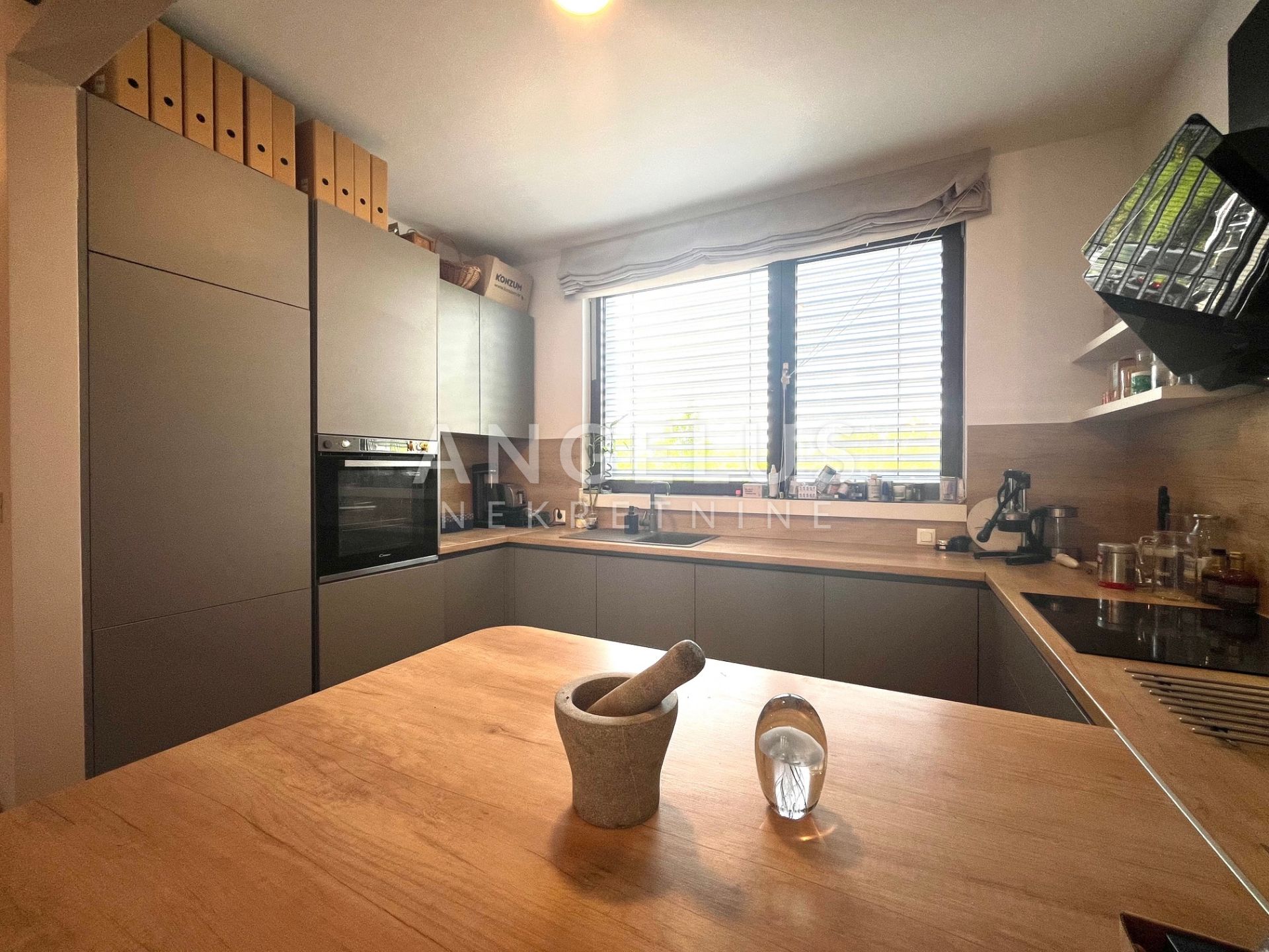 Moderna kuća u nizu površine cca 250m2 prostire se na tri etaže; podrum, prizemlje i kat.