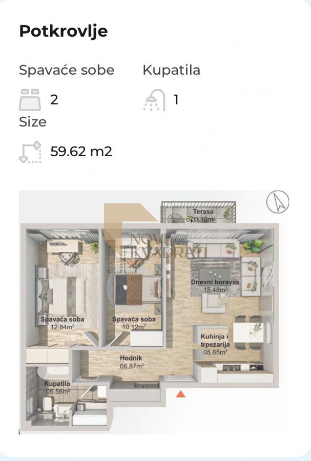 Opis: U ponudi prostran penthouse sa dve spavaće sobe, dnevnim boravkom i kuhinjom sa trpezarijom. Balkon nudi panoramski pogled i idealan je za uživanje na otvorenom. Orijentacija prema ulici donosi prirodno svetlo popodne i prelep zalazak sunca. PVC stolarija i multisplit sistemi grejanja i hlađenja čine stan funkcionalnim i udobnim.