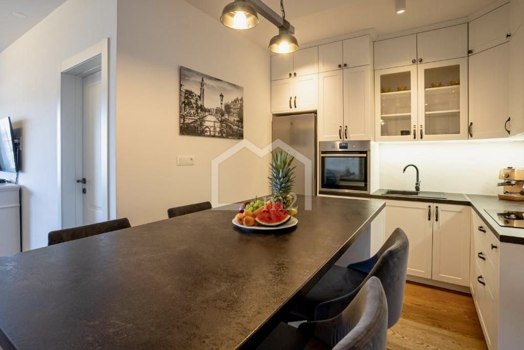 Potpuno je namješten i moderno uređen dizajnerskim namještajem i kao takav se iznajmljuje. Mogućnost kratkoročnog i dugoročnog najma.