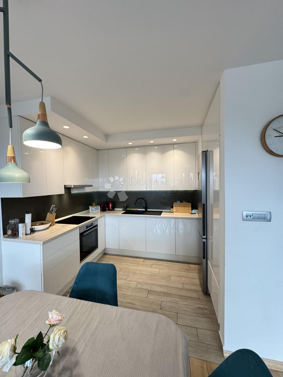 Unutarnji raspored vrlo je funkcionalan i prilagođen stvarnim potrebama svakodnevnog života. Stan obuhvaća tri odvojene spavaće sobe, velik i ugodan dnevni boravak, jednu kupaonicu s kadom te dodatni, odvojeni gostinjski WC, potpuno opremljenu kuhinju izrađenu po mjeri s Bosch aparatima (indukcijska ploča, perilica posuđa, hladnjak sa zamrzivačem i napa), te prostran ulazni hodnik s ugradbenim ormarima....