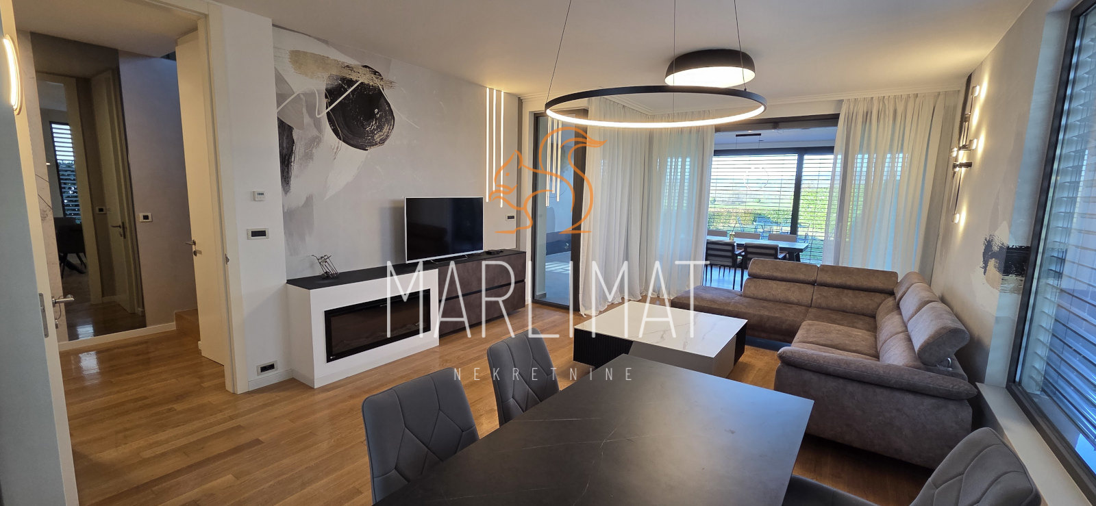 Ova impozantna nekretnina nudi harmoniju suvremene arhitekture i funkcionalnosti, pomno osmišljenu za udoban i luksuzan život. Smještena uz samo golf igralište, pruža nevjerojatne poglede na uređene zelene površine i jezera, stvarajući osjećaj privatnosti i spokoja, a istovremeno je udaljena samo nekoliko minuta vožnje od najposjećenijeg shopping centra “Arena centar“ ....