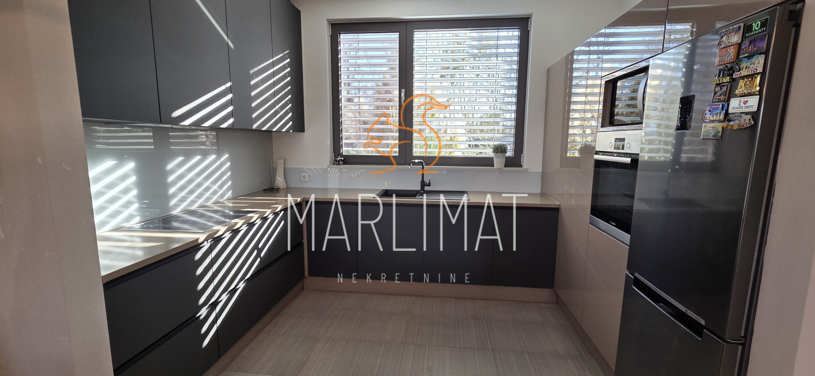 Podrum: velika prostorija za druženje sa mini kuhinjom i šankom, kotlovnica i vešeraj.Prizemlje: ulazni prostor, zaseban wc, kuhinja, dnevni boravak s blagovaonicom, zimski vrt sa velikim stolom i izlaskom u vrt.Kat: predsoblje, tri spavaće sobe od kojih jedna ima vlastitu kupaonicu i balkon.