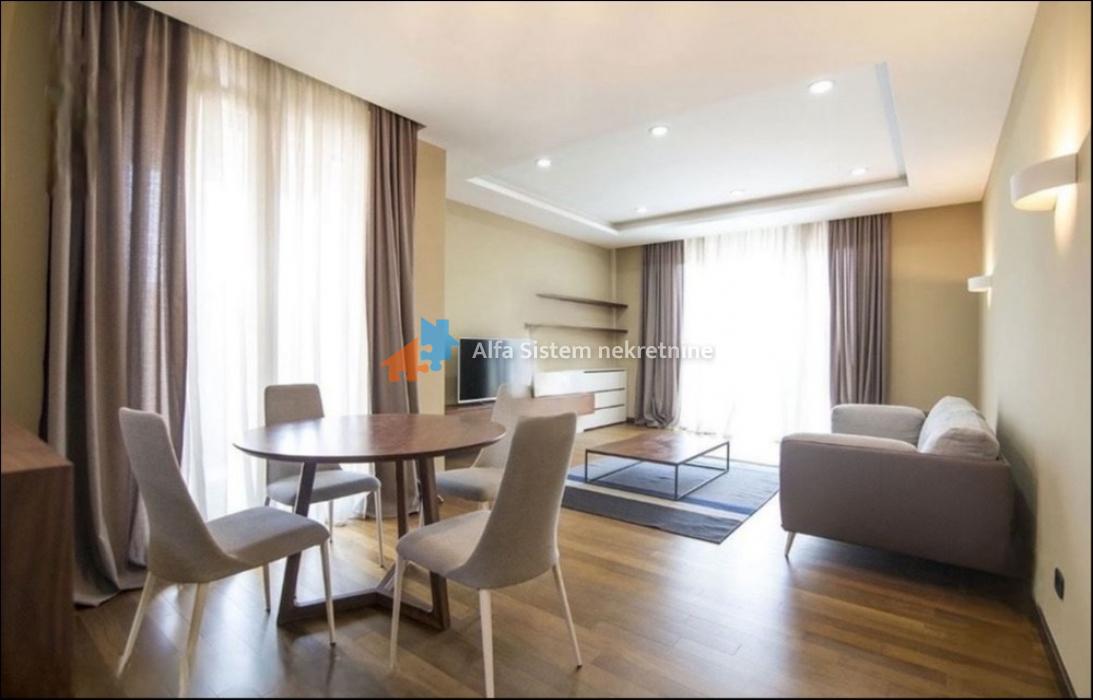 Opis: Izdaje se luksuzan trosoban stan od 74 m² sa garažnim mestom, u novoj zgradi na Dorćolu. Nalazi se na 3. spratu sa liftom, moderno je opremljen, svetao i funkcionalno organizovan. Sastoji se od open space dnevnog boravka sa trpezarijom, kuhinjom i terasom sa pogledom na grad, kao i od hodnika koji vodi do dve spavaće sobe, kupatila i toaleta.