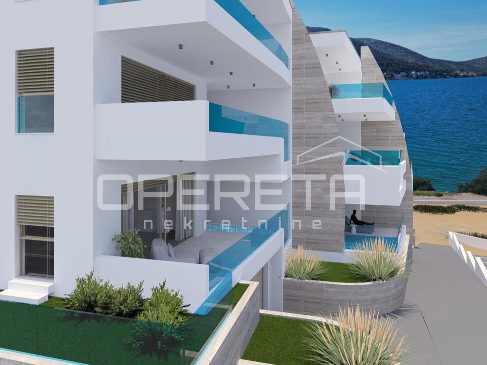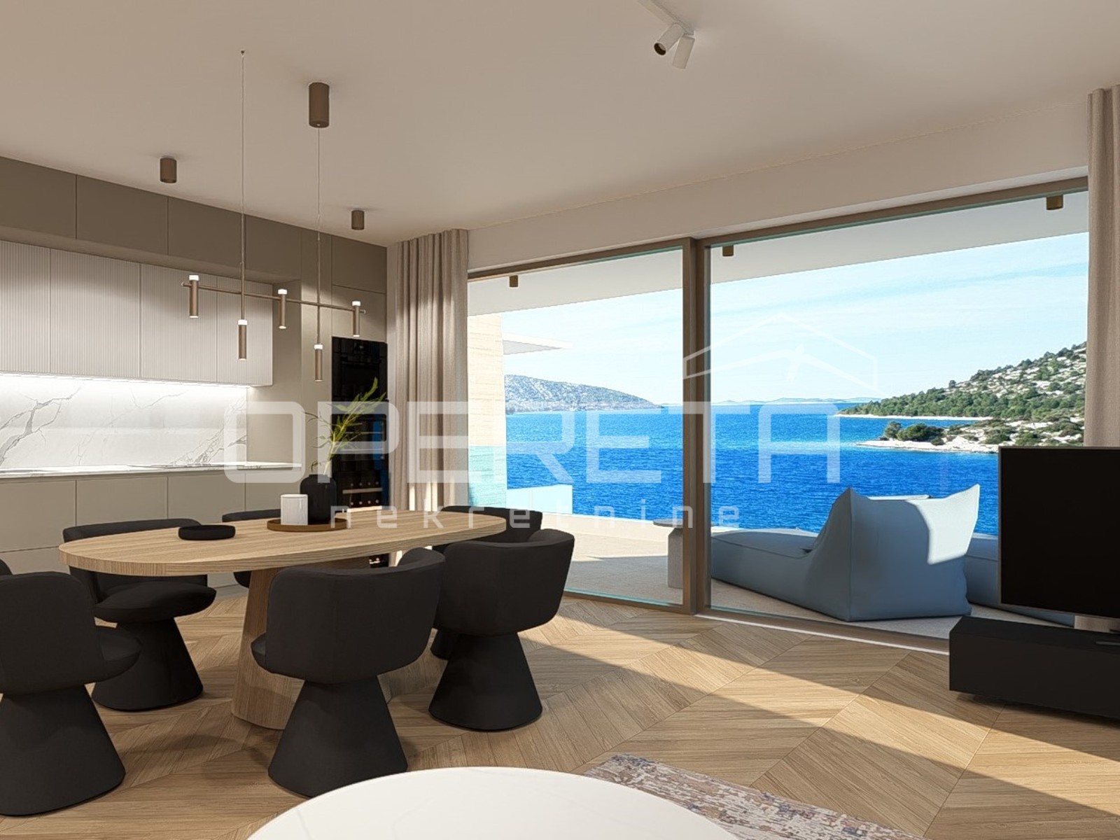 Opis: S2- SJEVERStan 3s, 108,90 m2, novogradnja- Šibenik, GrebašticaStan se smjestio u prestižnom kompleksu uz samu obalu, u mirnom i šarmantnom naselju Grebaštica, nedaleko od Šibenika. Sam projekt predstavlja spoj moderne arhitekture i luksuza. Kompleks se sastoji od dvije zgrade – Sjever i Jug – s ukupno 9 stanova, dizajniranih za vrhunski komfor. Planirani završetak izgradnje predviđen je za kraj 2025. godine.Zgrada će imati dizalo, podzemne garaže i privatne bazene na terasama svih stanova. Za gradnju će se koristiti visokokvalitetni materijali, koji garantiraju dugotrajnost, visoku energetsku učinkovitost i udobnost. Oprema uključuje podno grijanje u svim prostorijama, dizalice topline i sustav klimatizacije, osiguravajući optimalne uvjete boravka tijekom cijele godine.Stan S2 na prvom katu zgrade Sjever, površine 108,90m², nudi moderan i funkcionalan raspored. Sastoji se od open space dnevnog boravka s kuhinjom i blagovaonicom, tri spavaće sobe (dvije s vlastitom kupaonicom), te hodnika i dodatne kupaonice. Iz dnevnog prostora izlazi se na terasu površine 17,60m² s privatnim bazenom, pružajući savršenu kombinaciju udobnosti i luksuza....