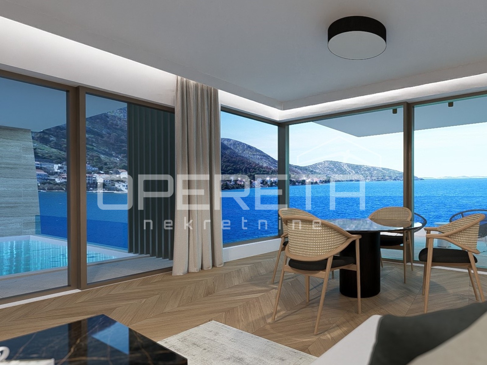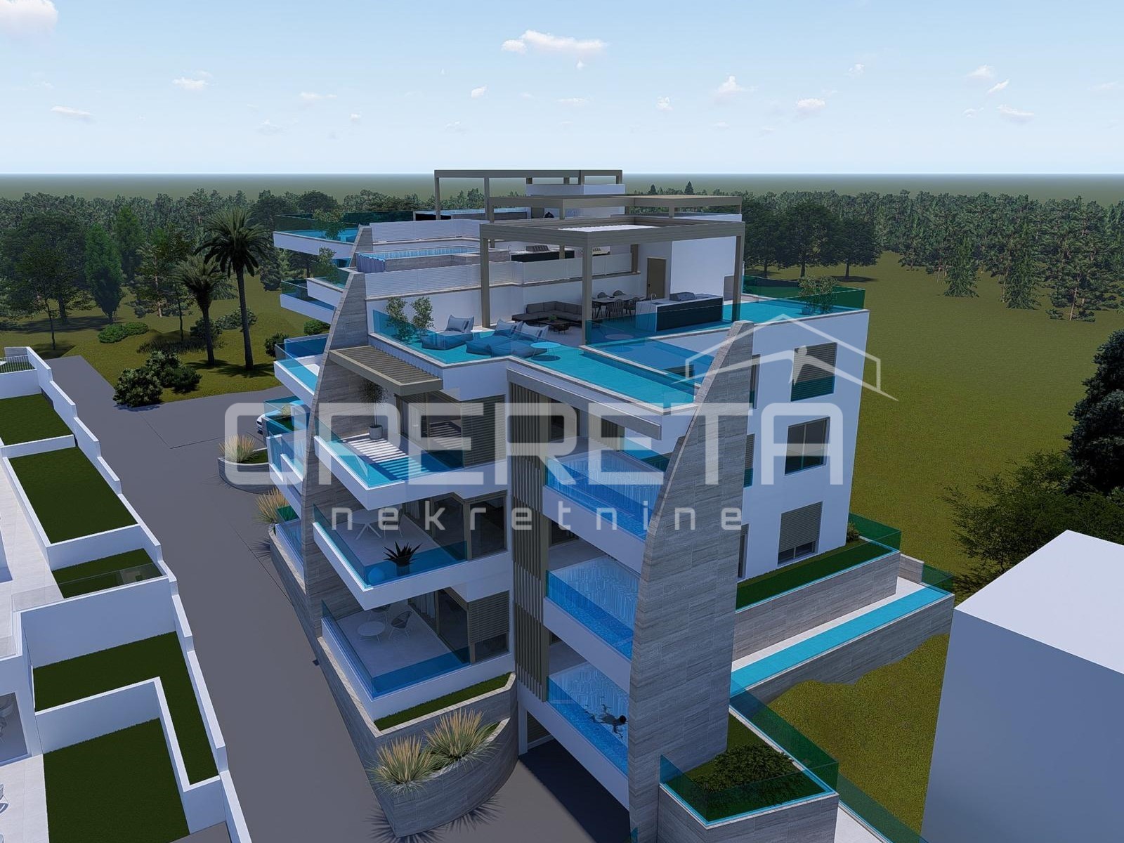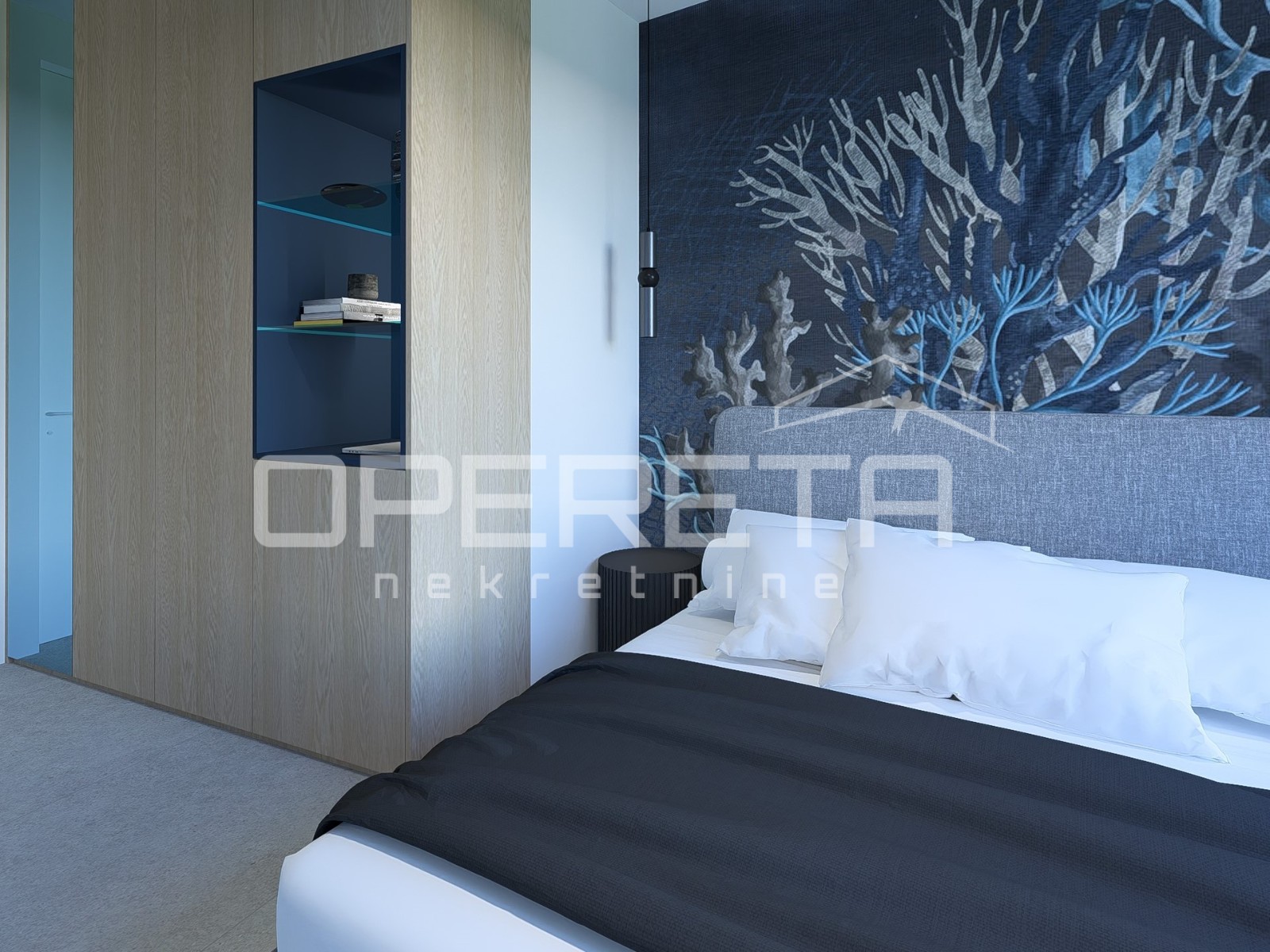 Opis: S6- JUGStan 3s, 110,54 m2, novogradnja- Šibenik, GrebašticaStan se smjestio u prestižnom kompleksu uz samu obalu, u mirnom i šarmantnom naselju Grebaštica, nedaleko od Šibenika. Sam projekt predstavlja spoj moderne arhitekture i luksuza. Kompleks se sastoji od dvije zgrade – Sjever i Jug – s ukupno 9 stanova, dizajniranih za vrhunski komfor. Planirani završetak izgradnje predviđen je za kraj 2025. godine. Zgrada će imati dizalo, podzemne garaže i privatne bazene na terasama svih stanova. Za gradnju će se koristiti visokokvalitetni materijali, koji garantiraju dugotrajnost, visoku energetsku učinkovitost i udobnost. Oprema uključuje podno grijanje u svim prostorijama, dizalice topline i sustav klimatizacije, osiguravajući optimalne uvjete boravka tijekom cijele godine.Stan S2, smješten na drugom katu zgrade Jug, površine 110,54 m², ističe se prostranim dnevnim prostorom. Open space dnevni boravak s kuhinjom i blagovaonicom povezan je s dva balkona. Jedan balkon, površine 14 m², nudi pogled na more, dok je u nastavku drugog privatni bazen površine 12,43 m²....