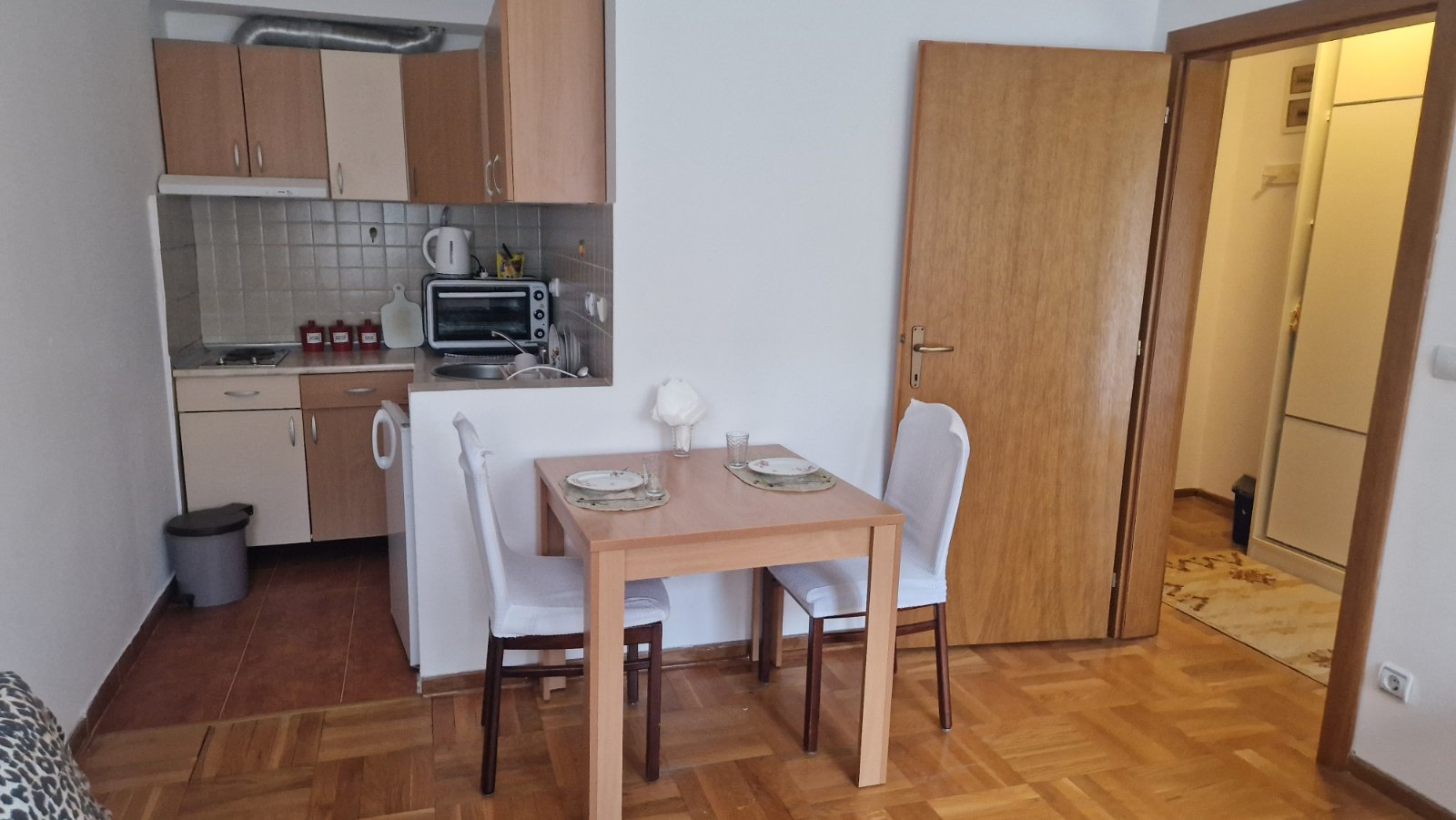 Prodaje se sa nameštajem. Sastoji se od ulaznog hodnika,dnevne sobe sa kuhinjom, spavaćom sobom ,kupatilom i terasom.