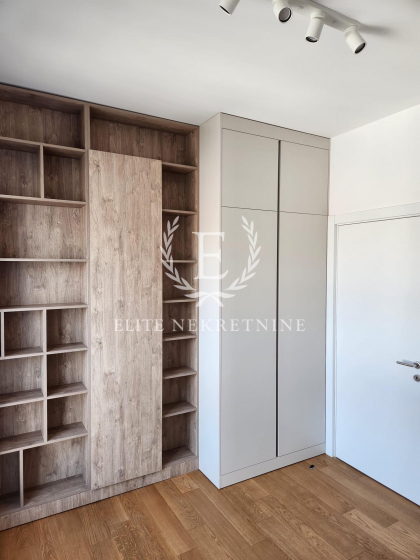 Sastoji se od svetlog dnevnog boravka, odvojene kuhinje, dve udobne spavaće sobe, terase sa prelepim pogledom ka Dunavu i parku namenjenom samo stanarima, kupatila, odvojenog toaleta, kao i praktične tehničke sobe opremljene veš mašinom i mašinom za sušenje veša.