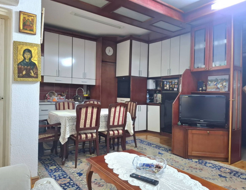 Opis: Najlepsa lokacija u centru grada-naselje iza opstine. Stara gradnja, drugi sprat, trostrano orjentisan. Sastoji se od dva stana koji su spojeni u jedan. Oba uknjizena na po 51m2. Strukturu stana cini: dnevni boravak sa kuhinjom i trpezarijom, lodja, tri spavace sobe, radna soba, kupatilo, toalet i hodnik. Sredjen, prodaje se sa kompletnim namestajem i tehnikom. Na pet minuta od stana je uknjizena garaza od 14m2 koja je uračunata u cenu.