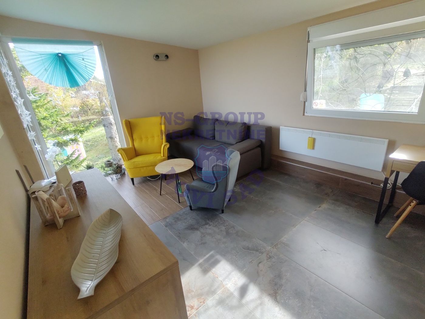 Opis: Izuzetna kuća u Čereviću! Odličan kvalitet gradnje, materijala - pločice, pvc stolarija.. Pogodna kako za život, tako i kao vikendica, ali kao objekat za turističku namenu - izdavanje preko bookinga! Dve komforne sobe, a u dnevnoj sobi se izdvajaju portalni prozori sa fantastičnim pogledom! Grejanje na struju, wi -fi sistem, kako klima, tako i radijatori. Plac/imanje od preko 13 ara odlično uredjen - prostor za izgradnju bazena, postojeće malo dečije igralište, "zelena" ograda, zasad bambusa.. Prava oaza mira na Fruškoj gori sa predivnim pogledom! Prodaje se kompletno nameštena! Za više informacija pozovite naše agente prodaje!