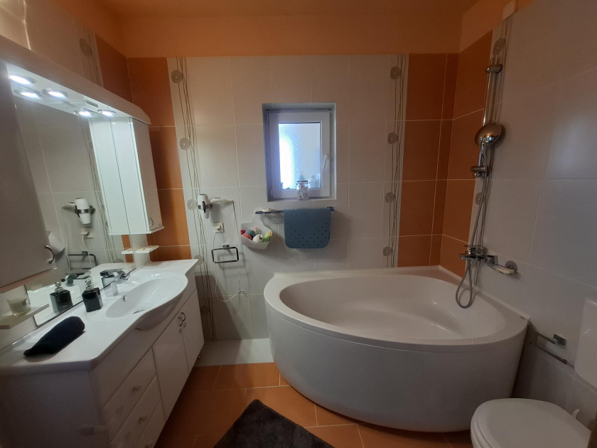 U prizemlju kuće, kuhinja, trpezarija i dnevna soba su spojene u jedan veliki otvoreni prostor. Na spratu se nalaze dve veoma velike spavaće sobe. Svaki sprat ima kupatilo, jedno sa tušem, a drugo sa ugaonom kadom. Kuća ima veliki potkrovlje. Konstrukcija zgrade je čvrsta.