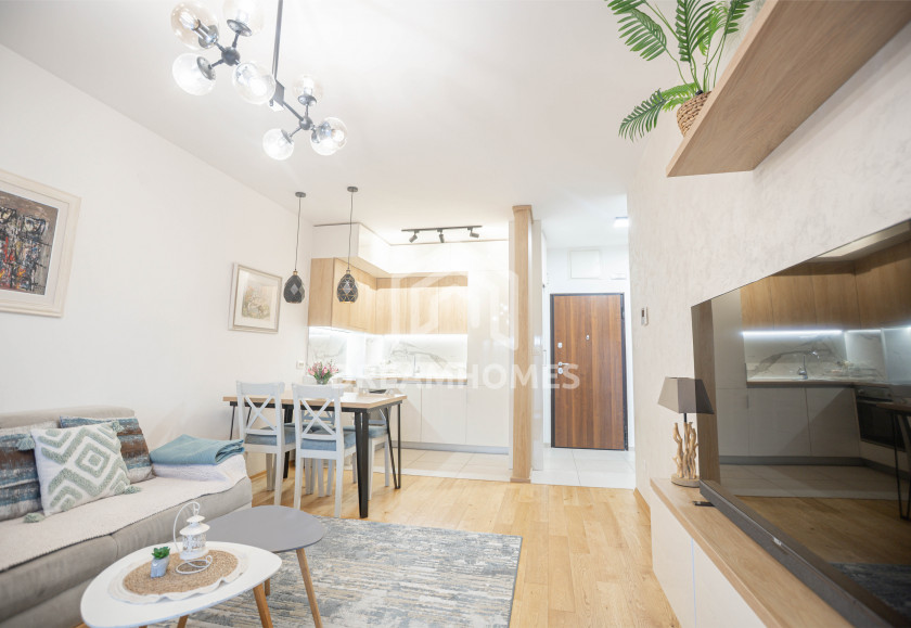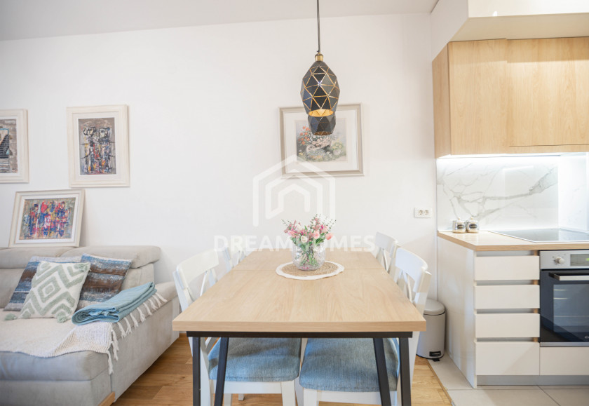 Stan je moderno opremljen, svijetao i izuzetno prijatan za boravak. Kvalitetni materijali, pažljivo biran namještaj i funkcionalan raspored pružaju visok nivo komfora.