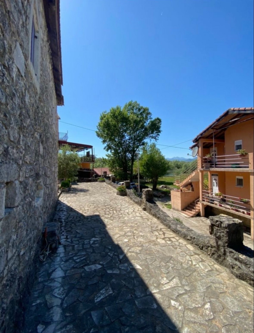 Opis: Prodaje se kuca 76m2 sa dvoristem 204m2 + zemljiste uz kucu , udaljeno 150m od kuce, povrsine 5880m2, Dodosi, opstina Cetinje - prelijepo naselje na obali Skadarskog jezera, savrseno za ljubitelje prirode , mira i tradicije. Asfaltni je prilaz do kuce i plac je kompletno ogradjen. Renovirana je u autenticnom etno stilu. Kuca sadrzi dvije spavace sobe, kuhinju, dnevnu sobu, dva kupatila i dvije terase. Potrebna zavrsna popravka konobe. Nekretnina se nalazi na 10 metara od mosta. Idealna za odmor, porodicni zivot ili turisticku djelatnost. Uredno vlasnistvo 1/1.