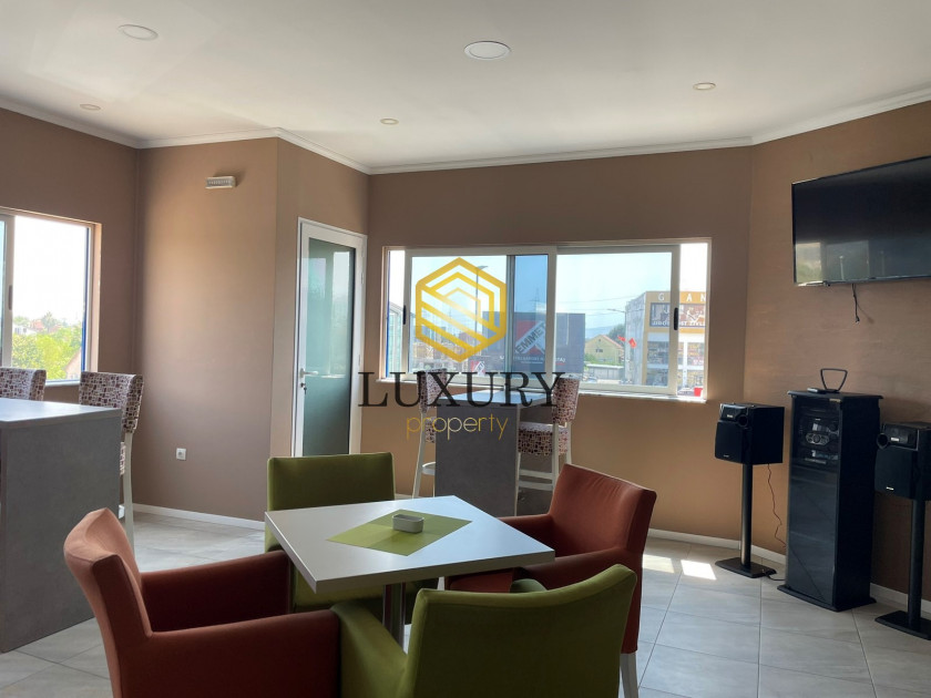 Struktura: hodnik, dva toaleta, kafe bar I kancelarijski prostor. U prostor je dosta otvorenih površina koje obezbjeđuju prirodnu ventilaciju, grijanje i hlađenje. Dvorište je obezbijeđeno I pokriveno video nadzorom. Kafic se moze iskoristit za staru namjenu a I ne mora.