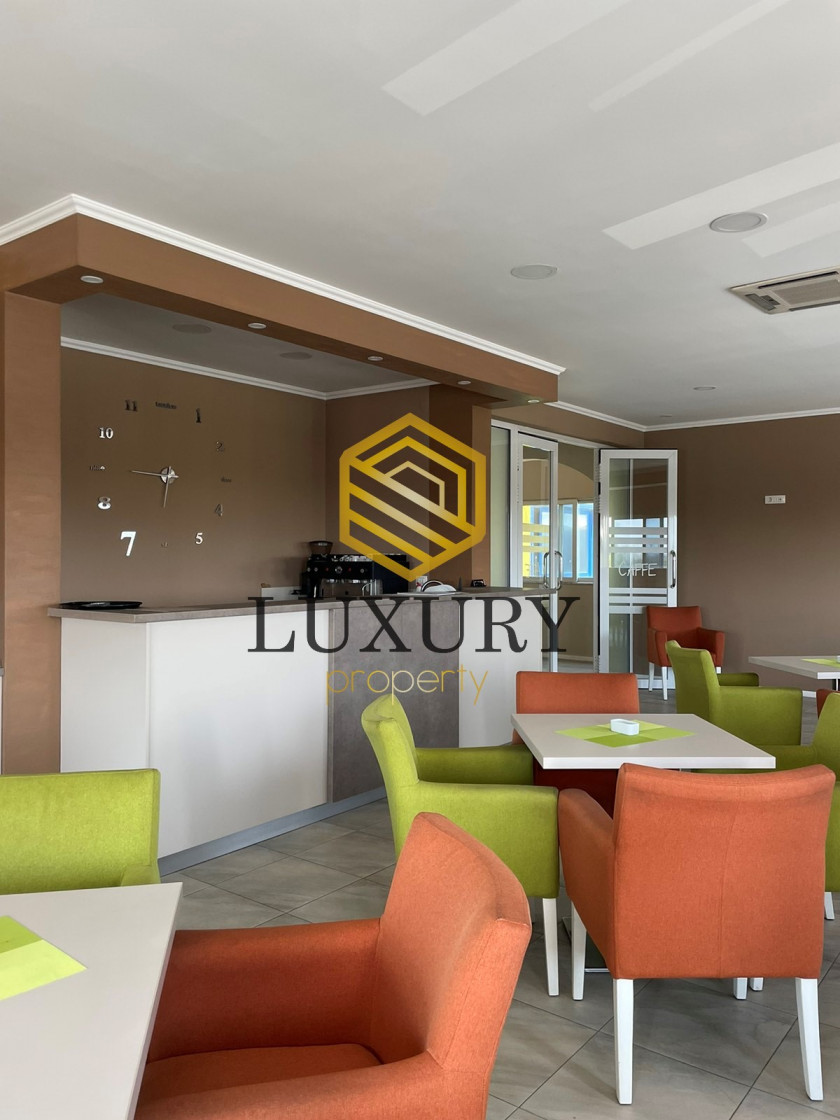 Unutrašnje stepenište vodi do sprata. Dvije velike prostorije bez pregradnih zidova, pribliznih dimenzija 150m2 I 100m2. U manjem prostoru je kafe bar, sa cijelom opremom I pristojnom kuhinjom namijenjenoj za pripremu jednostavnih jela. U prostoru su dva toaleta. Druga prostorija zauzima 150m2. Trenutno se u prostor odlaže višak stvari iz domaćinstva.