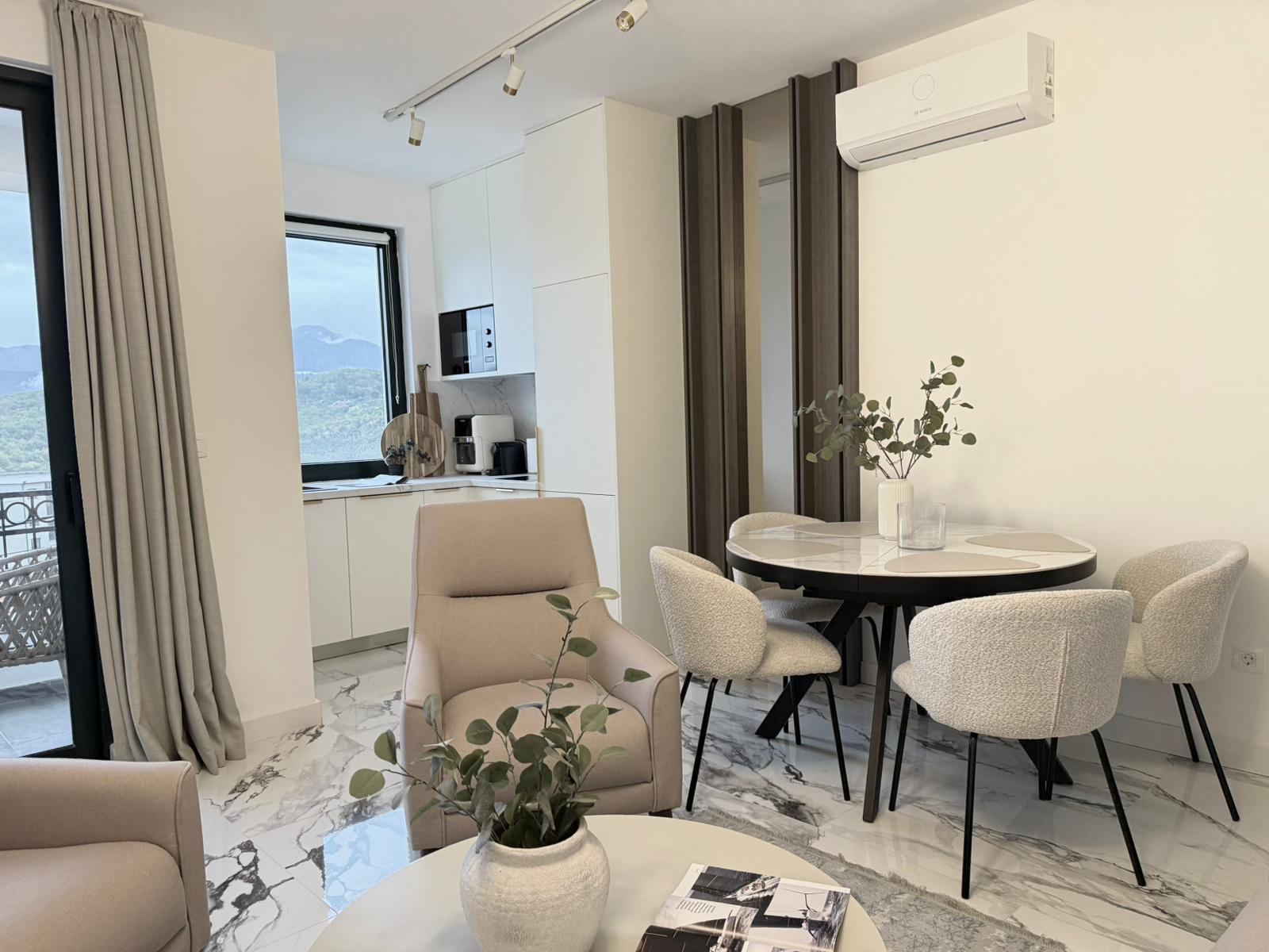 Opis: Na prodaju je predivno uređen jednosoban stan u Radovićima, opština Tivat, udaljen svega nekoliko stotina metara od Luštica Bay kompleksa, njegovog naselja Centrale i novog golf igrališta. Površina stana: 62m2