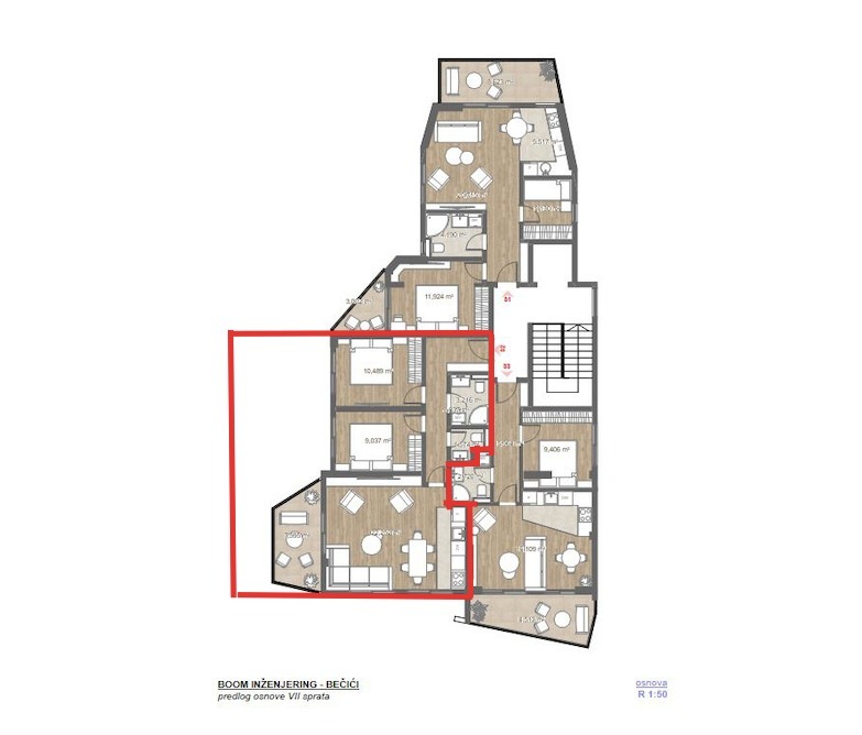 Opis: Prodaja ID7349. Na prodaju stan u Bečićima — penthaus sa funkcionalnim prostorom na krovu. Površina stana je 70 m², plus krovna terasa od 70 m². Ukupna površina stana sa terasom je 140 m². Stan se nalazi na 7. spratu. Zgrada ima lift. Stan se sastoji od prostranog dnevnog boravka kombinovanog sa kuhinjom, dve spavaće sobe, kupatila, dve terase i ogromnog prostora za rekreaciju na krovu. Glavna spavaća soba ima sopstvenu terasu. Stan se nalazi 400 metara od plaže, preko puta hotela Splendid. Spiralno stepenište vodi sa velike terase na krov. Na krovu možete opremiti letnju sobu sa toaletom, tušem, kuhinjom, dnevnim boravkom i terasom za sunčanje sa ležaljkama i đakuzijem. Sva infrastruktura, prodavnice, restorani su na pešačkoj udaljenosti. Bečići su najbolja plaža u Crnoj Gori i najudobnije mesto za život i zimi i leti. Mogućnost kupovine garažnog mesta uz doplatu. Udaljenost do plaže Bečići: 400 m. Datum završetka: 2026.