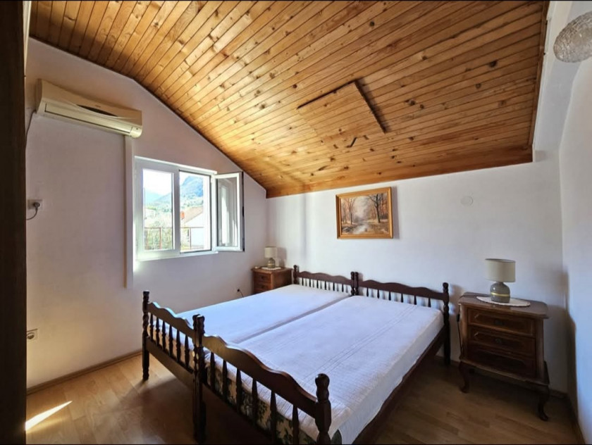 Drugi sprat (cca 55 m²): 3 spavaće sobe, kupatilo, veliki balkon sa otvorenim pogledom na more.