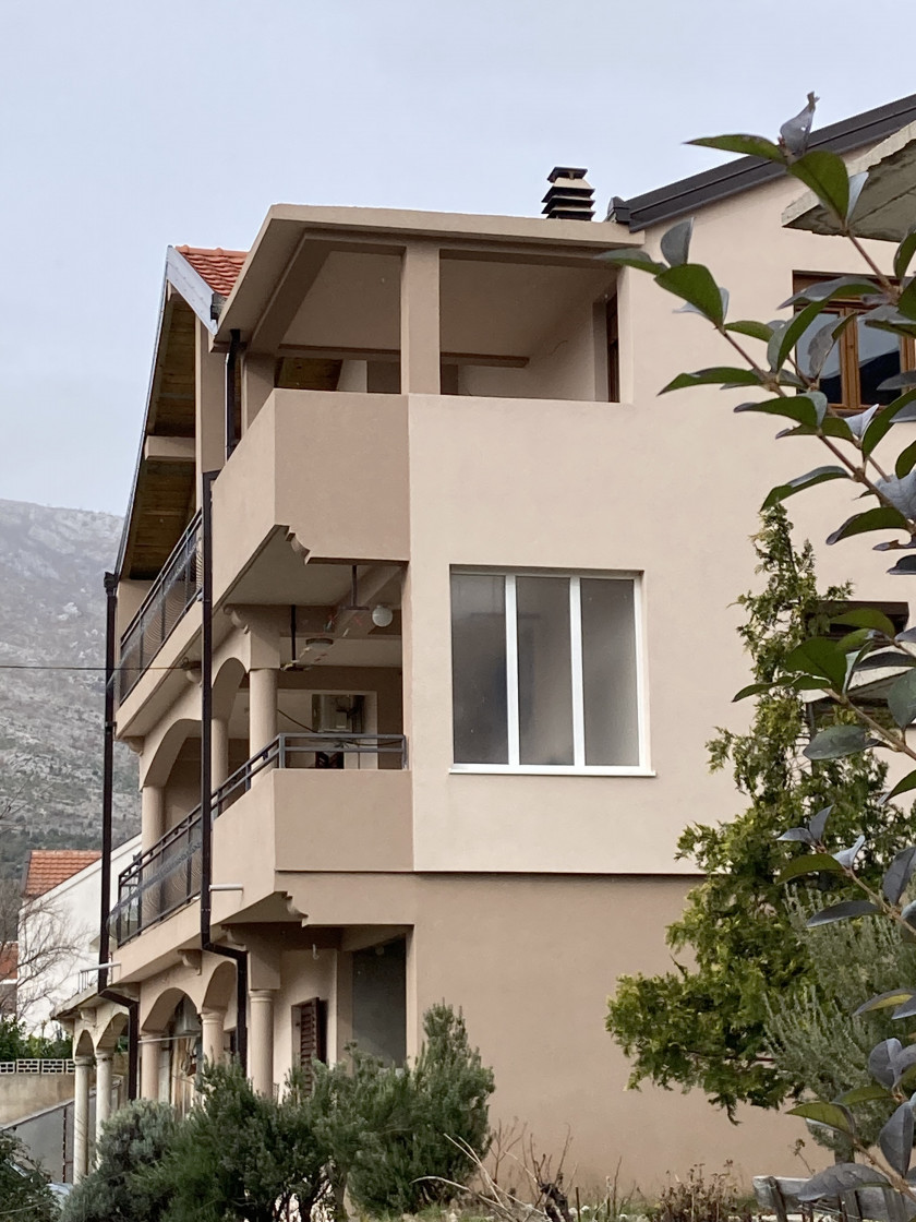 Ova pametno projektovana kuća funkcioniše kao dupleks – s jedne strane tri potpuno odvojene stambene jedinice sa haustorom, a s druge veliki podrum i izlivena ploča koja pruža mnoštvo mogućnosti: od uređenja prostranog dvorišta s pogledom na grad i poslovnog prostora, do gradnje još jedne kuće iste veličine.